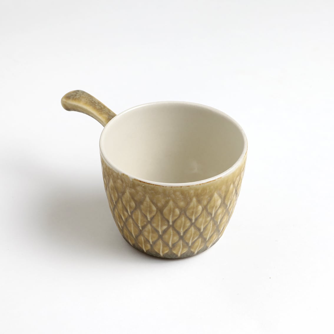 1950年代、Jens H. Quistgaard(イェンス・クィストゴー)がデンマークKronjyden(クロニーデン社)で製作を手がけていた時期にデザインしたRelief(レリーフ)シリーズの把手付きスープカップです。