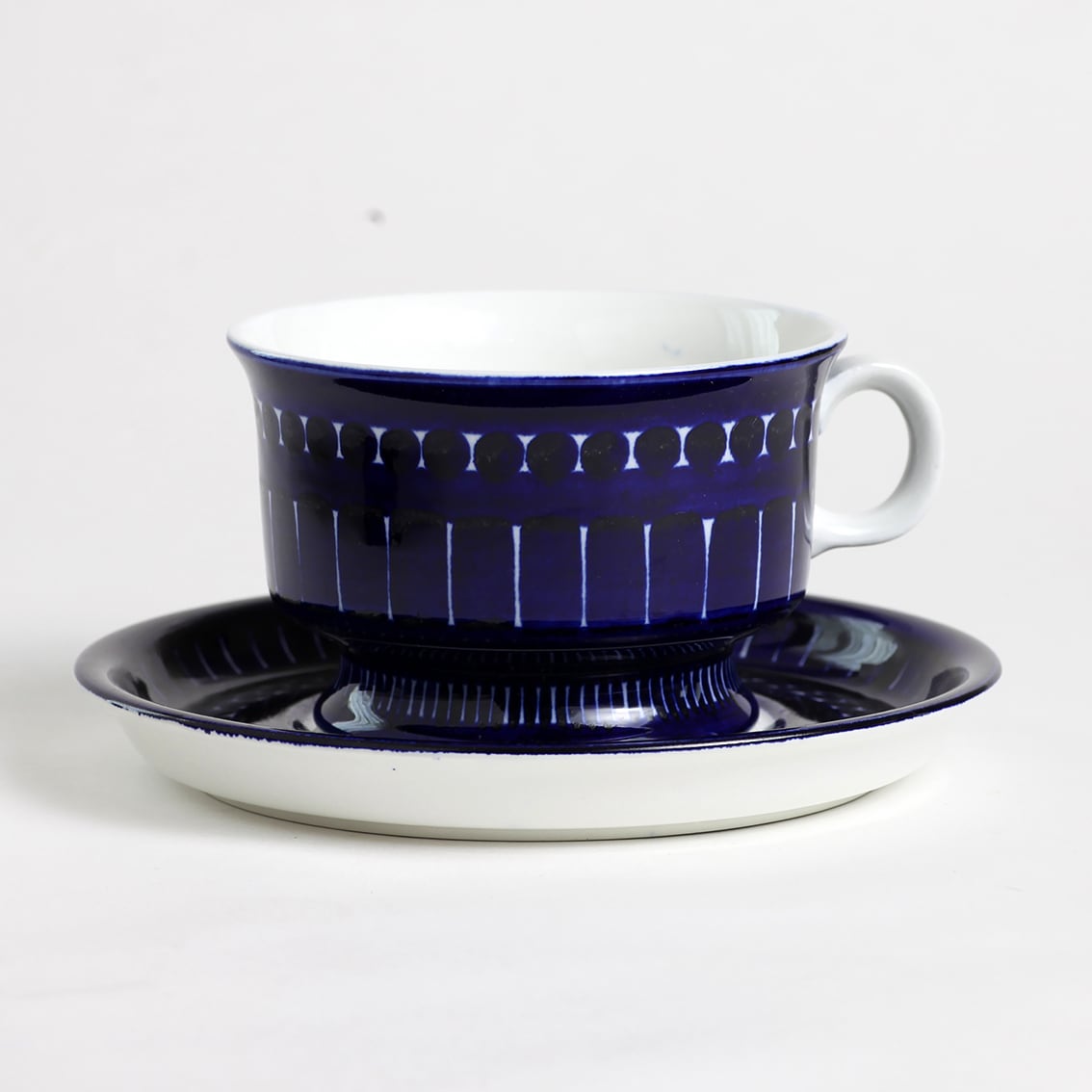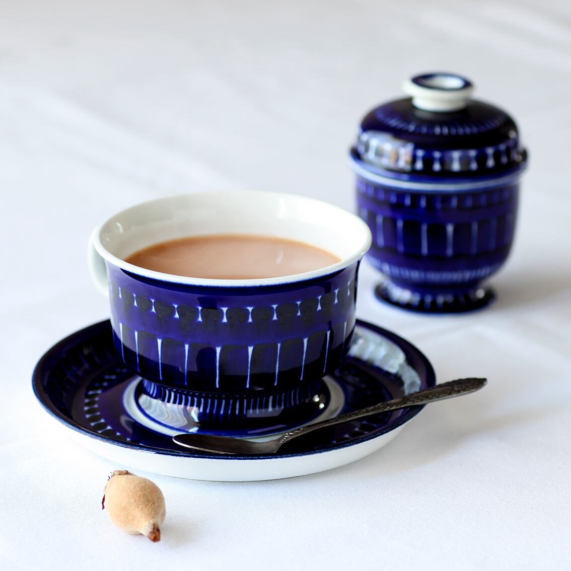 目の覚めるような深いブルーのValencia(バレンシア)シリーズは、アラビア社を代表する名作のひとつ。カップ&ソーサーは3種類あり、こちらは直径100mmのティーカップ&ソーサーです。