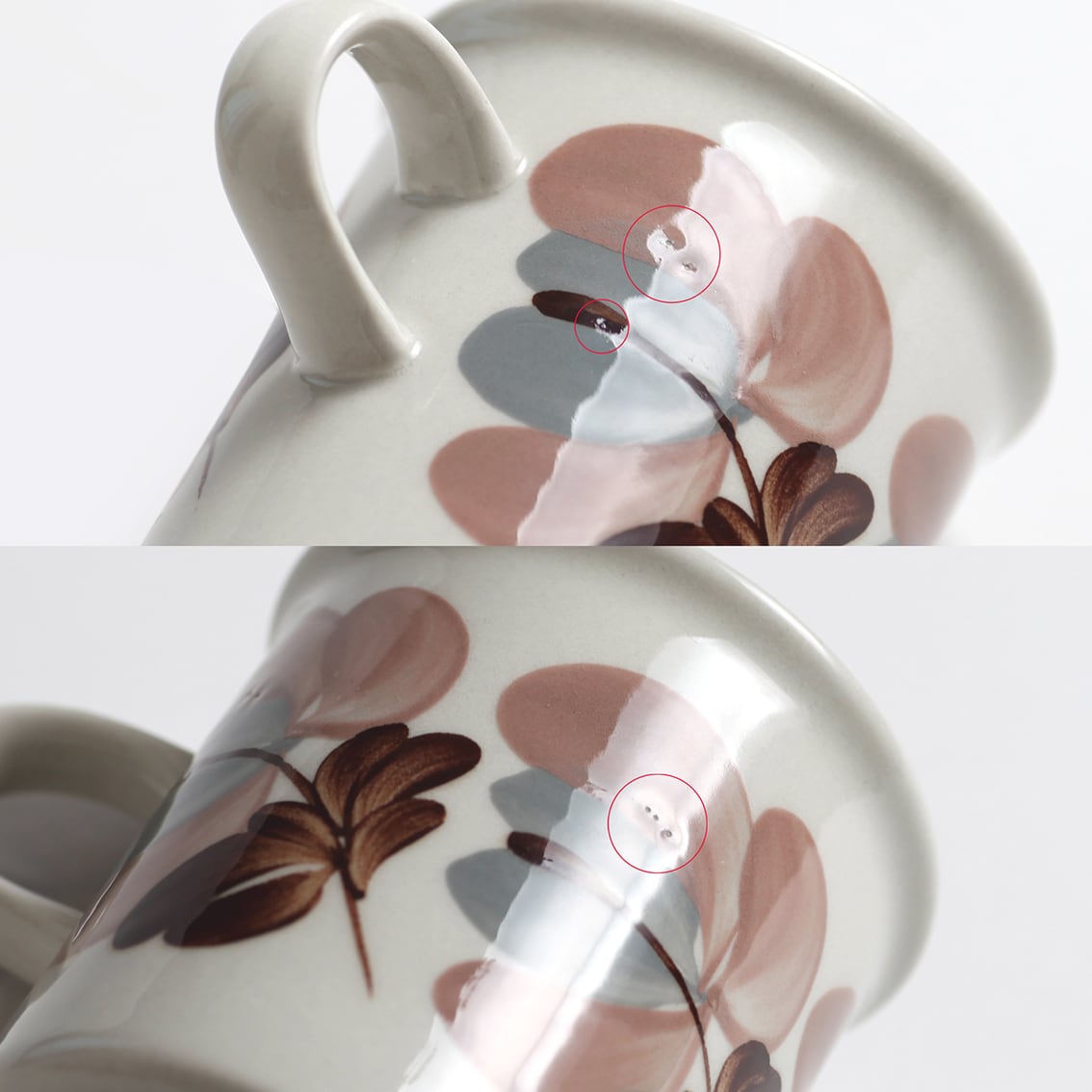 ・カップ絵柄部分の釉薬に小さな凹みが見られます(写真参照)。