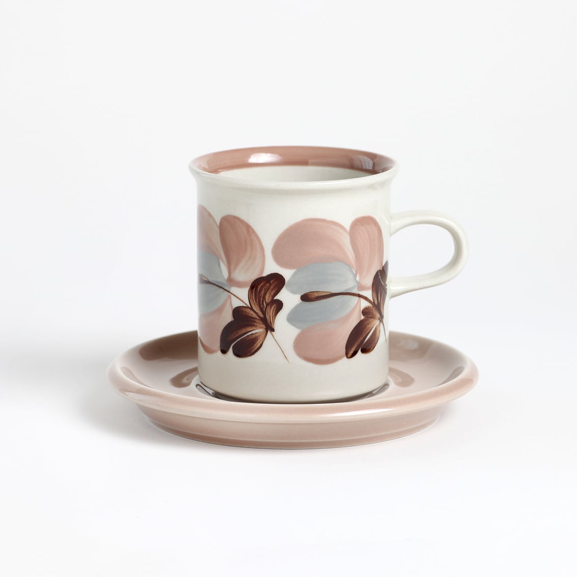 上品な色づかいが美しいKoralli(コラーリ)シリーズのコーヒーカップ&ソーサーです。Koralliはフィンランド語で珊瑚(Coral)ですが、花の色はコーラルピンクというよりも淡いピンクベージュやスモーキーピンクに近い印象。そよ風にゆれる花をRaija Uosikkinen(ライヤ・ウオシッキネン)がぽってりと優しく描きました。フォルムデザインはUlla Procope(ウラ・プロコペ)。製造数の少なさに加え、ここ数年の世界的な人気の高まりで入手が難しくなっているシリーズです。