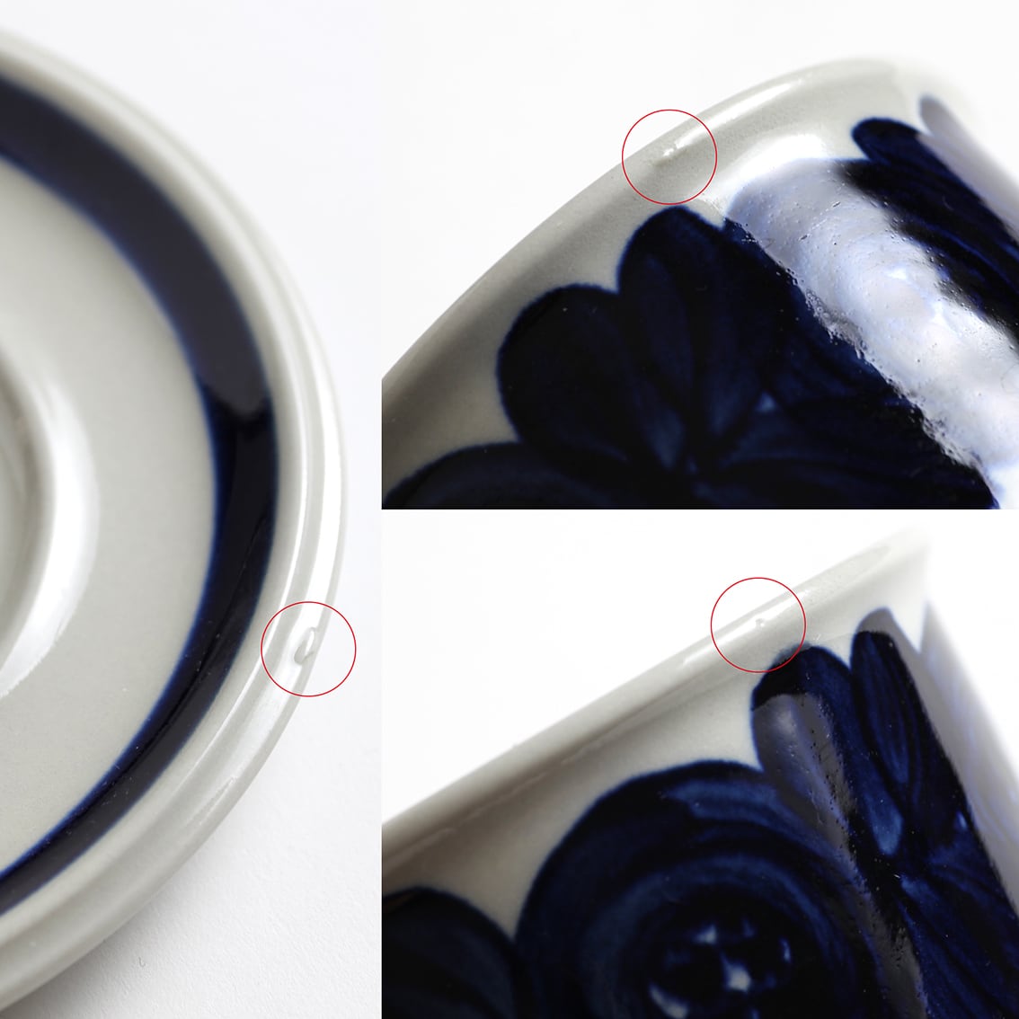・ソーサー縁に制作時にできた釉薬内の膨らみが見られます(写真参照)。