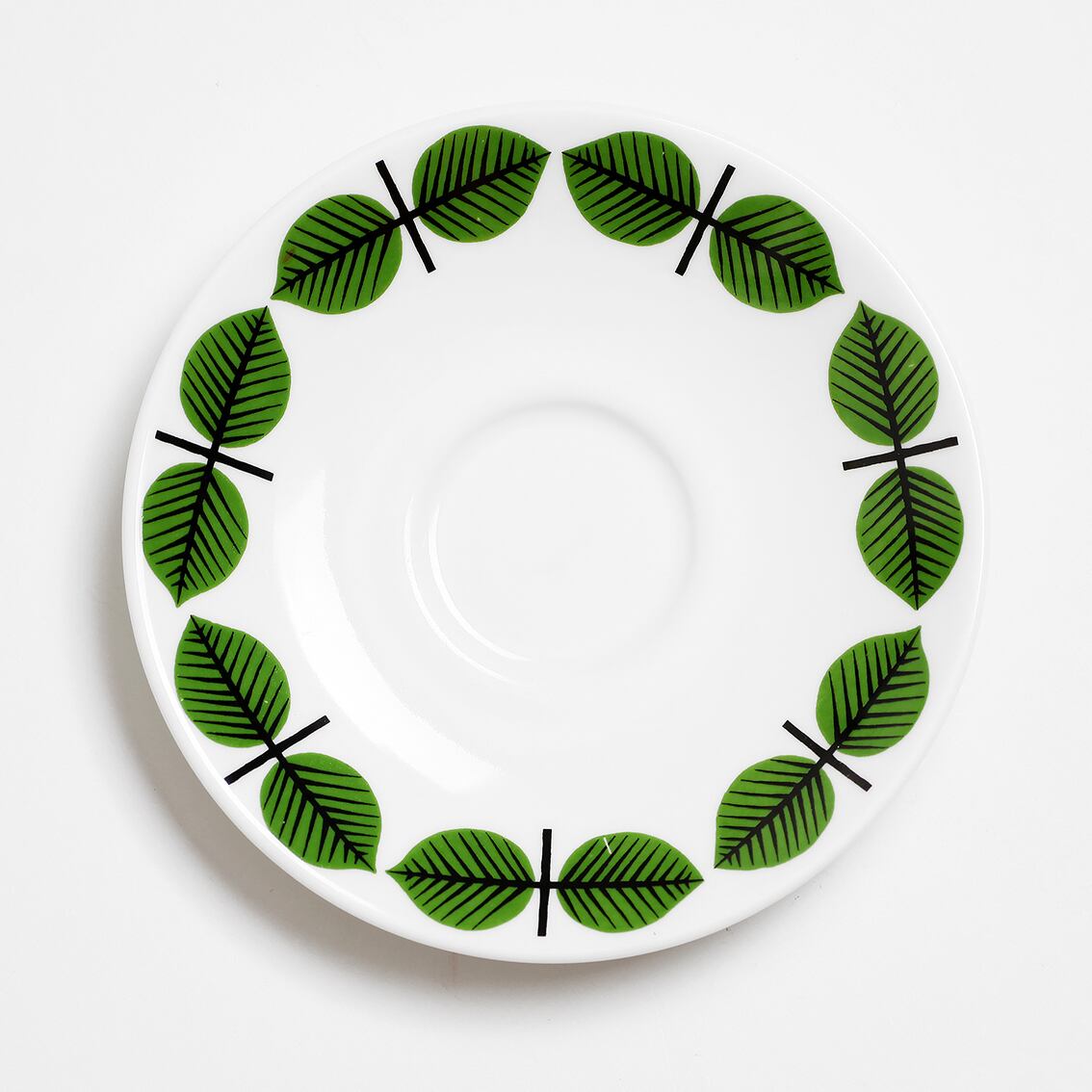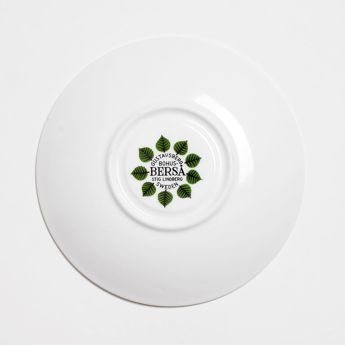 Berså(ベルソー/日本ではベルサとも呼ばれます)は庭園などの小さな「あずまや」を意味するスウェーデン語。お茶の時間(FIKA)をイメージして命名されたのでしょうか。巨匠Stig Lindberg(スティグ・リンドベリ)の作品の中でもとくに人気が高いことで知られる Berså は、明快に描かれた緑の葉と白地のコントラストが爽やかな北欧デザインの代名詞ともいえる傑作シリーズです。こちらはソーサーです。