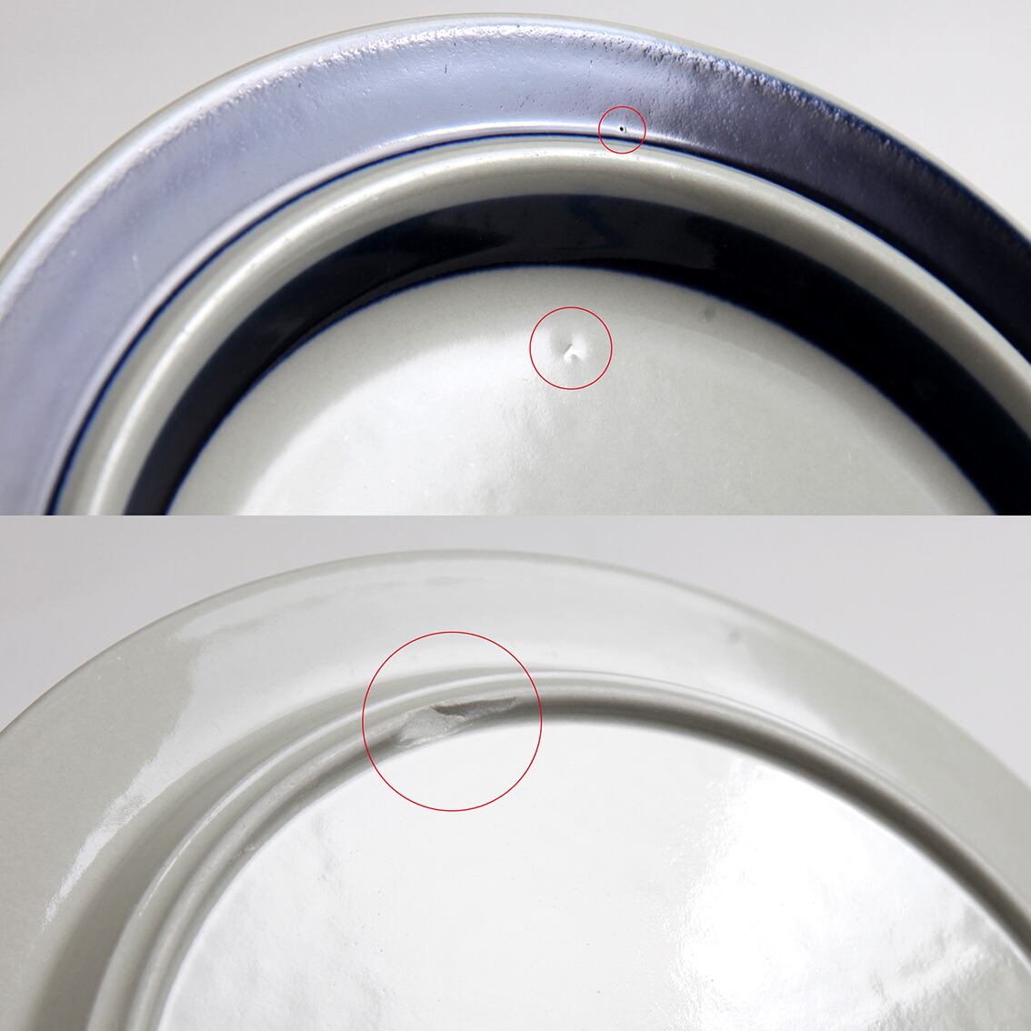 ・外周・色帯部分と中央部分に制作時にできた小さな凹凸がいくつか見られます(写真参照)。