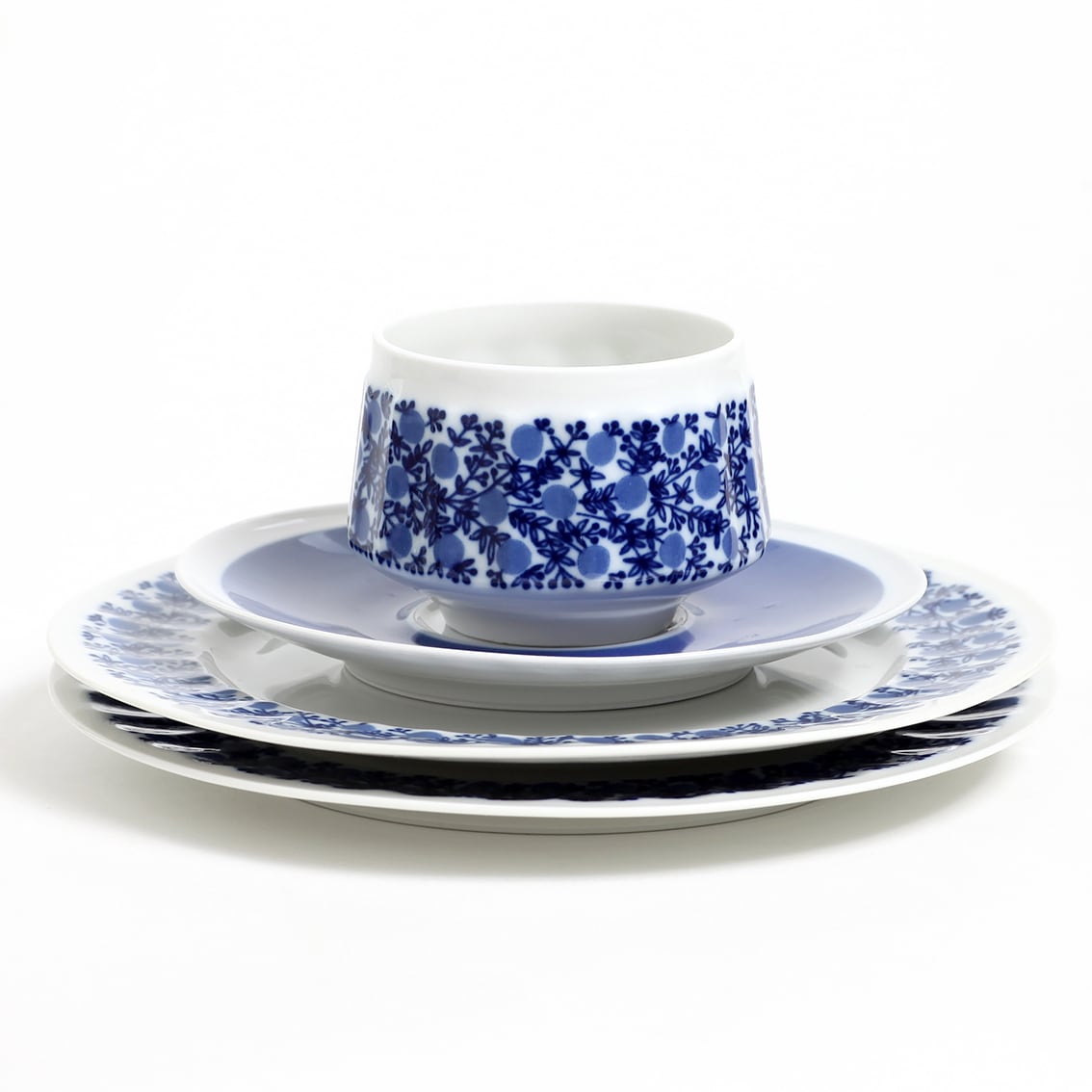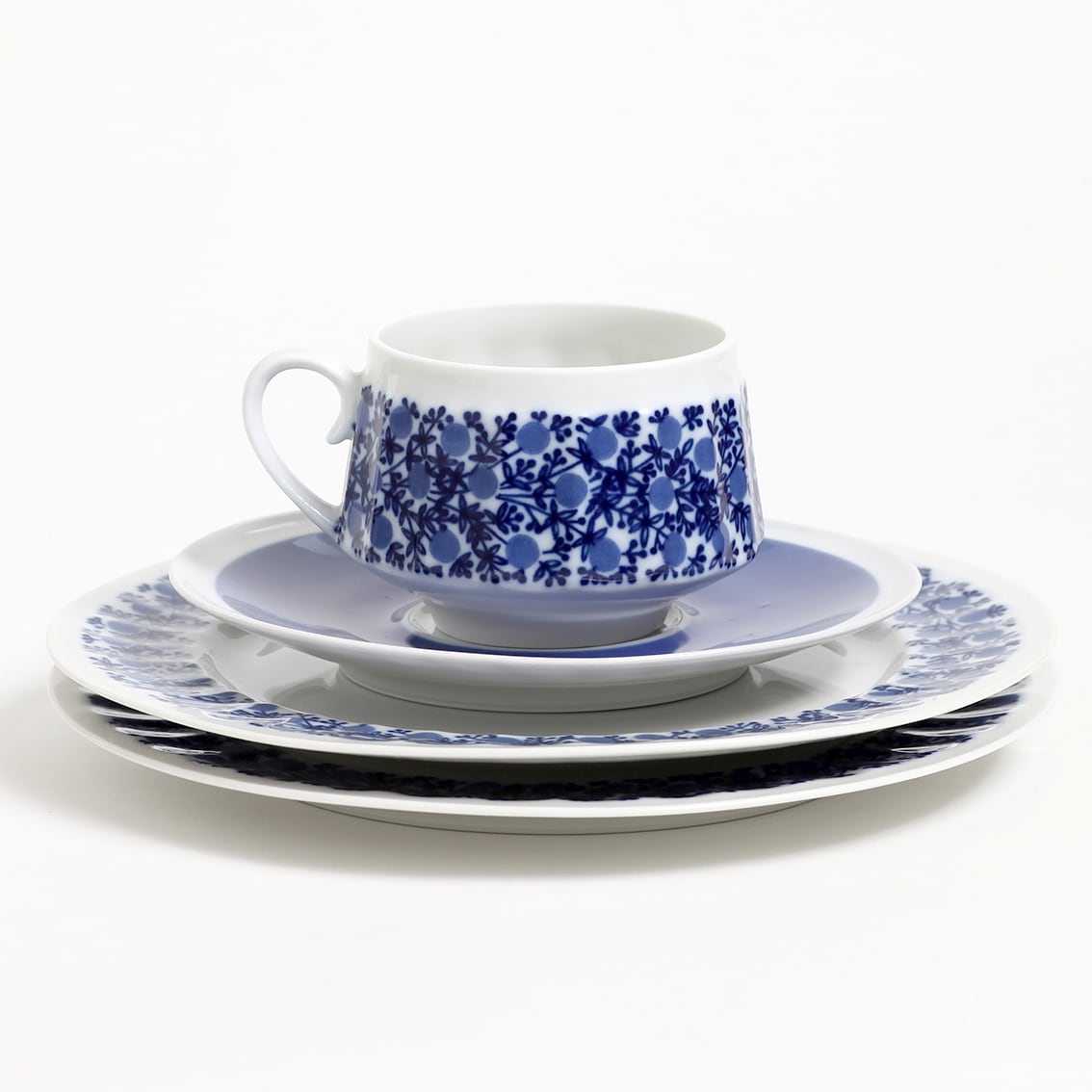 葉と丸い実を青の濃淡でリズミカルに描いたのはRaija Uosikkinen(ライヤ・ウオシッキネン)。カップ上部の白い余白が何とも上品です。