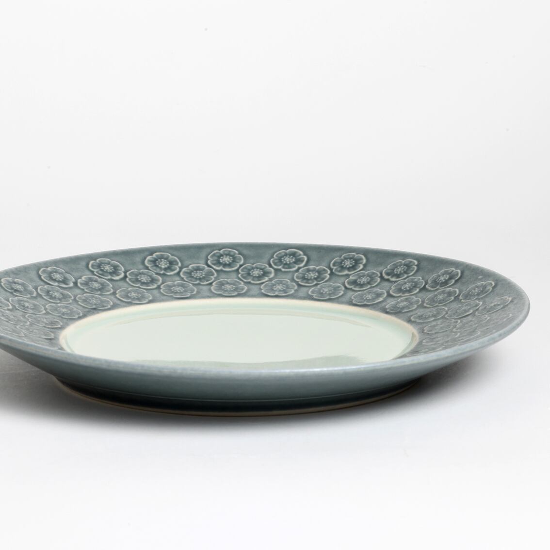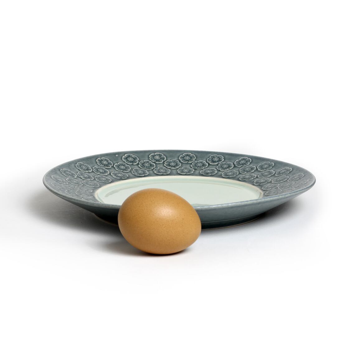 Jens H. Quistgaard(イェンス・クィストゴー)デザインによるPlum / Azur(プラム / アズール)シリーズの210mm皿(ブレックファスト・プレート)です。Plumシリーズは青いAzur(アズール)と褐色のUmbra(ウンブラ)がつくられましたが、こちらは落ち着きのあるクールなアズール。スモモの小花がちりばめられた静かなデザインはどこか和のエッセンスも感じさせ、自然な色合いは日本の生活空間にしっくりなじみます。