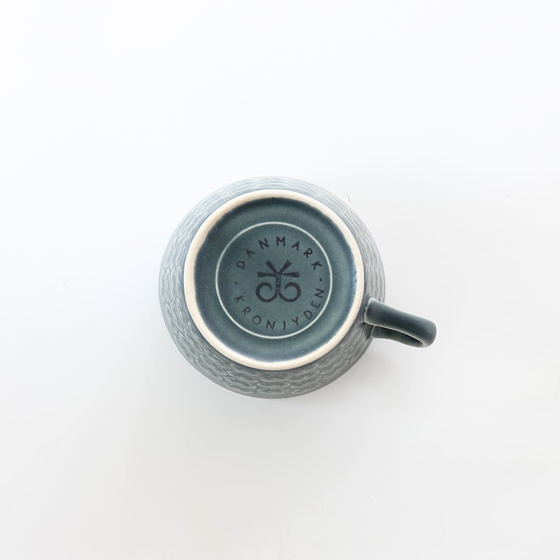 クィストゴーの陶器のシリーズは当初「Kronjyden(クロニーデン社)1937-1988」において制作がスタートし、その後1950年にはクロニーデンを買収した「Nissen(ニッセン社)1890 ~1990)」が製造を引き継ぎました。1970年代後半に入ると「B&G(ビングオーグレンダール社)1853~1987」に引き継がれ3社にわたり製造が続きました。 それぞれのロゴの入った個体とロゴの無い(初期の品はシールのみ)個体があります。こちらはクロニーデン社の品(ロゴ刻印あり)です。