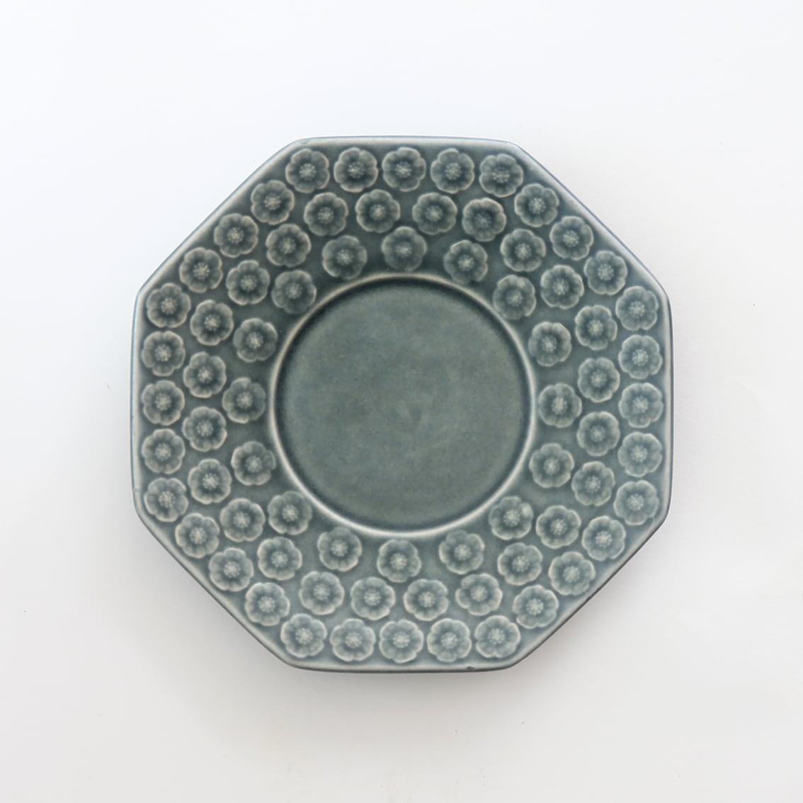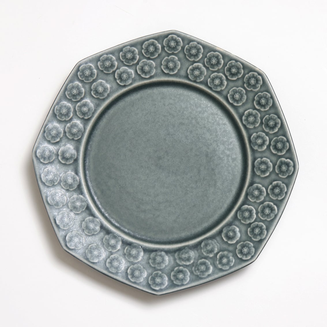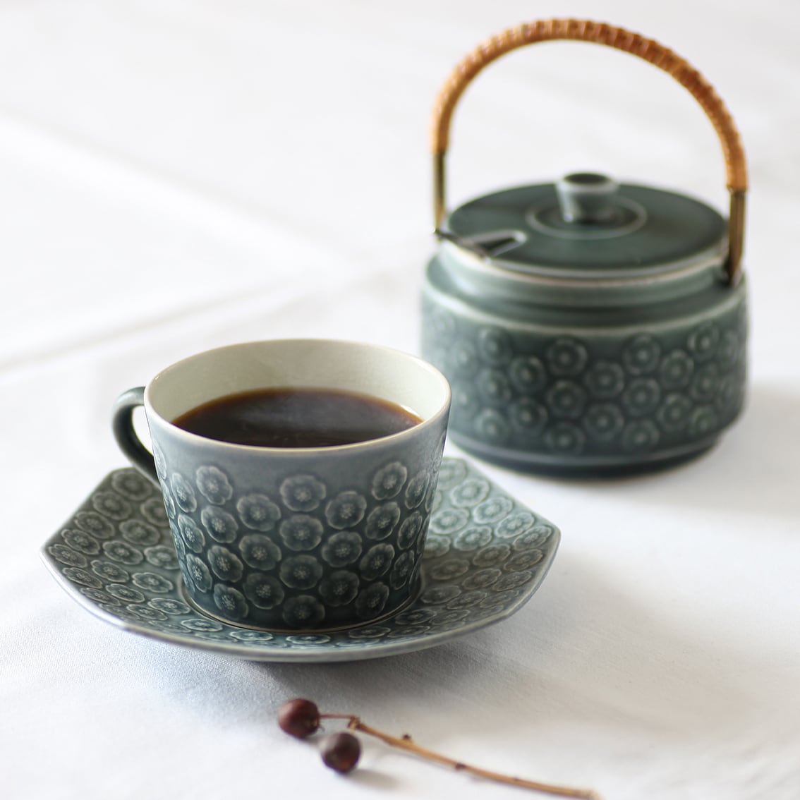 Jens H. Quistgaard(イェンス・クィストゴー)デザインによるPlum / Azur(プラム / アズール)シリーズのカップ&八角ソーサー、八角プレート3点セットです。Plumシリーズは青いAzur(アズール)と褐色のUmbra(ウンブラ)がつくられましたが、こちらは落ち着きのあるクールなアズール。スモモの小花がちりばめられた静かなデザインはどこか和のエッセンスも感じさせ、自然な色合いは日本の生活空間にしっくりなじみます。