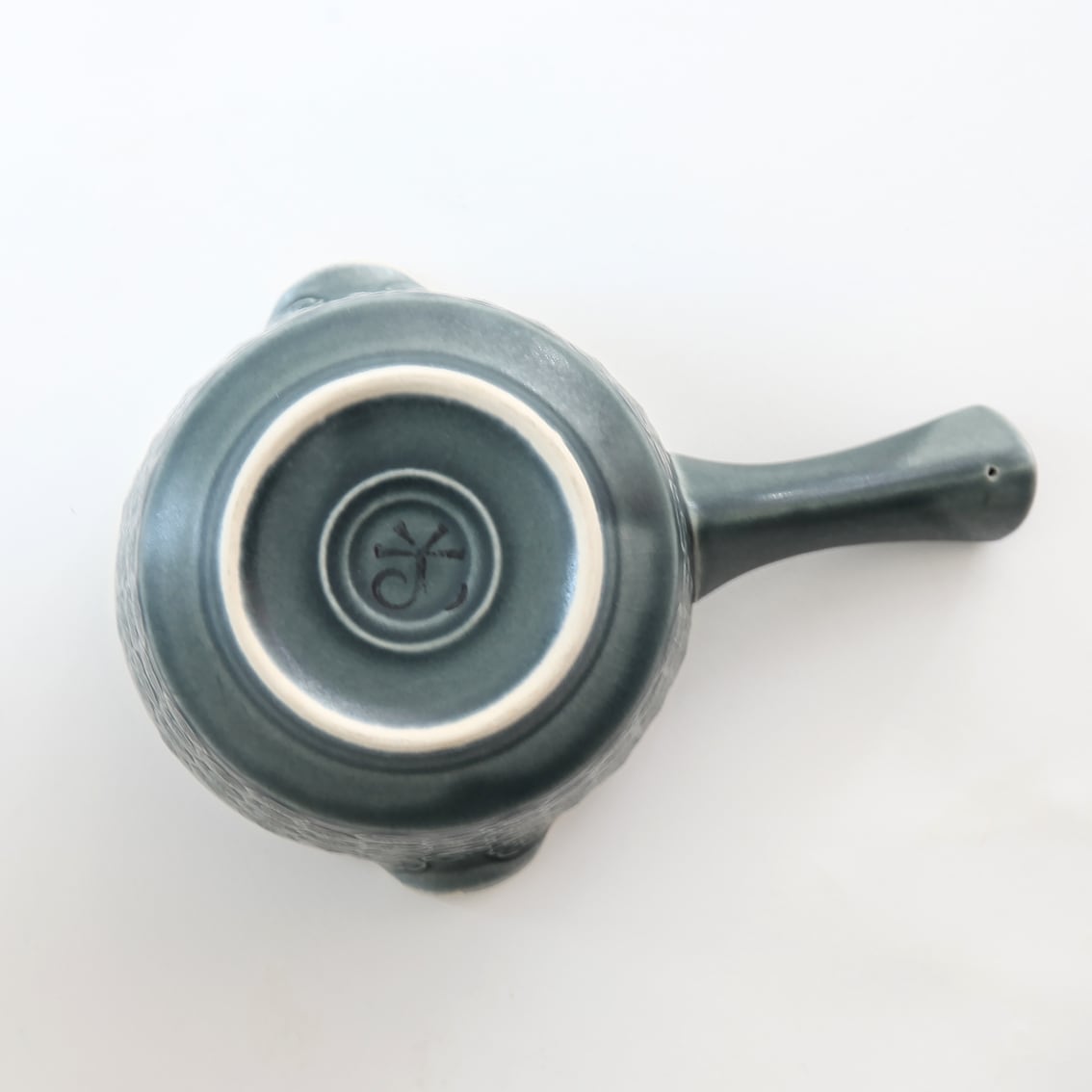 クィストゴーの陶器のシリーズは当初「Kronjyden(クロニーデン社)1937-1988」において制作がスタートし、その後1950年にはクロニーデンを買収した「Nissen(ニッセン社)1890 ~1990)」が製造を引き継ぎました。1970年代後半に入ると「B&G(ビングオーグレンダール社)1853~1987」に引き継がれ3社にわたり製造が続きました。 それぞれのロゴの入った個体とロゴの無い(初期の品はシールのみ)個体があります。こちらはクロニーデン社の品(ロゴ刻印あり)です。