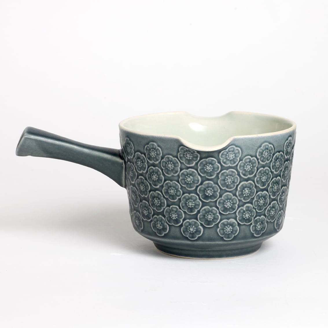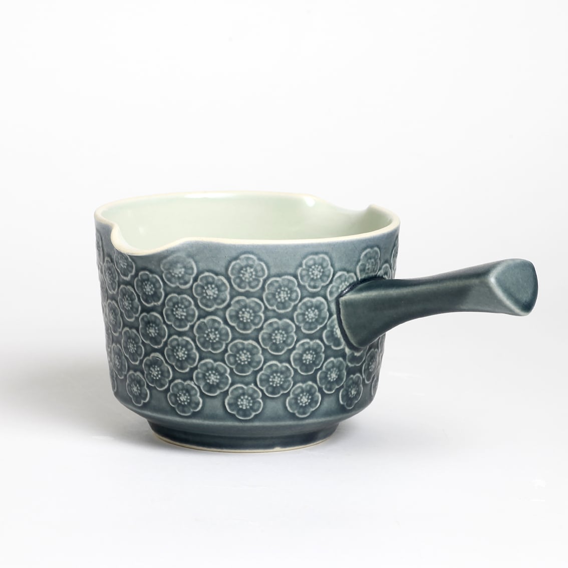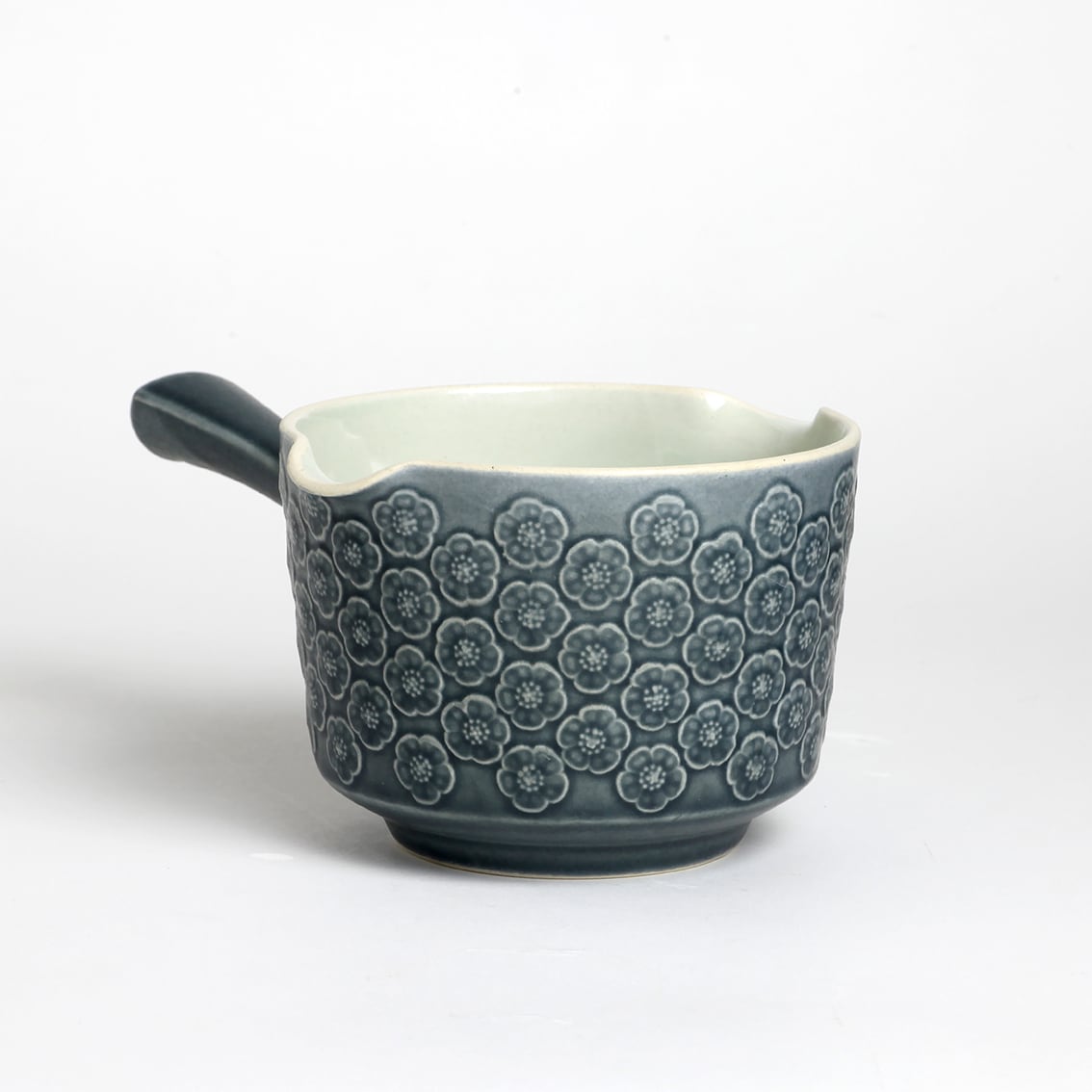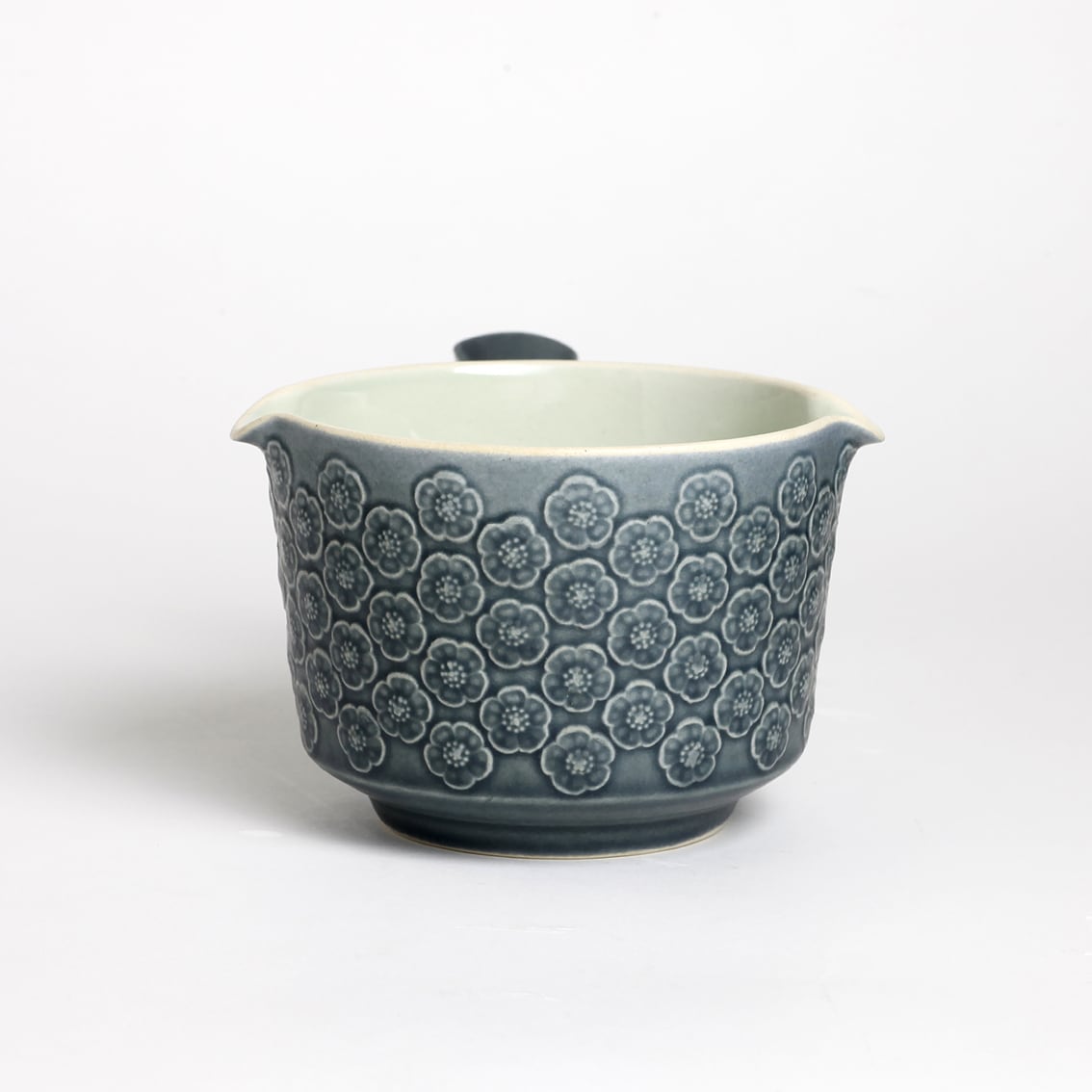Plumシリーズは青いAzur(アズール)と褐色のUmbra(ウンブラ)がつくられましたが、こちらは落ち着きのあるクールなアズール。スモモの小花がちりばめられた静かなデザインはどこか和のエッセンスも感じさせ、自然な色合いは日本の生活空間にしっくりなじみます。蕎麦猪口のような安定感のあるフォルムですので、ティータイムからお料理、インテリアまで自由に応用できそうです。