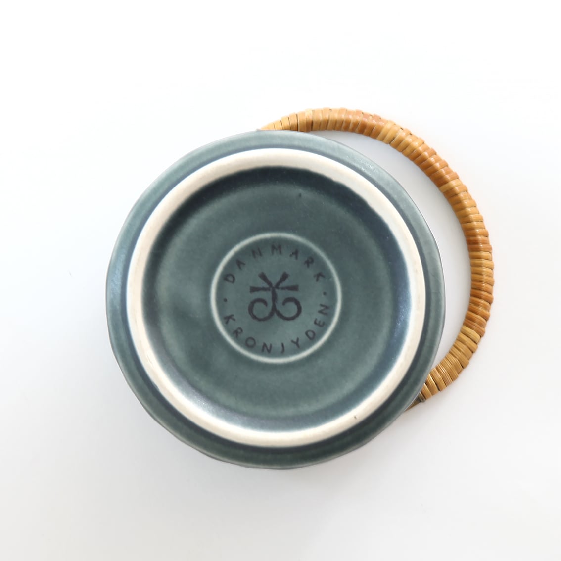 クィストゴーの陶器のシリーズは当初「Kronjyden(クロニーデン社)1937-1988」において制作がスタートし、その後1950年にはクロニーデンを買収した「Nissen(ニッセン社)1890 ~1990)」が製造を引き継ぎました。1970年代後半に入ると「B&G(ビングオーグレンダール社)1853~1987」に引き継がれ3社にわたり製造が続きました。 それぞれのロゴの入った個体とロゴの無い(初期の品はシールのみ)個体があります。こちらはクロニーデン社の品(ロゴ刻印あり)です。