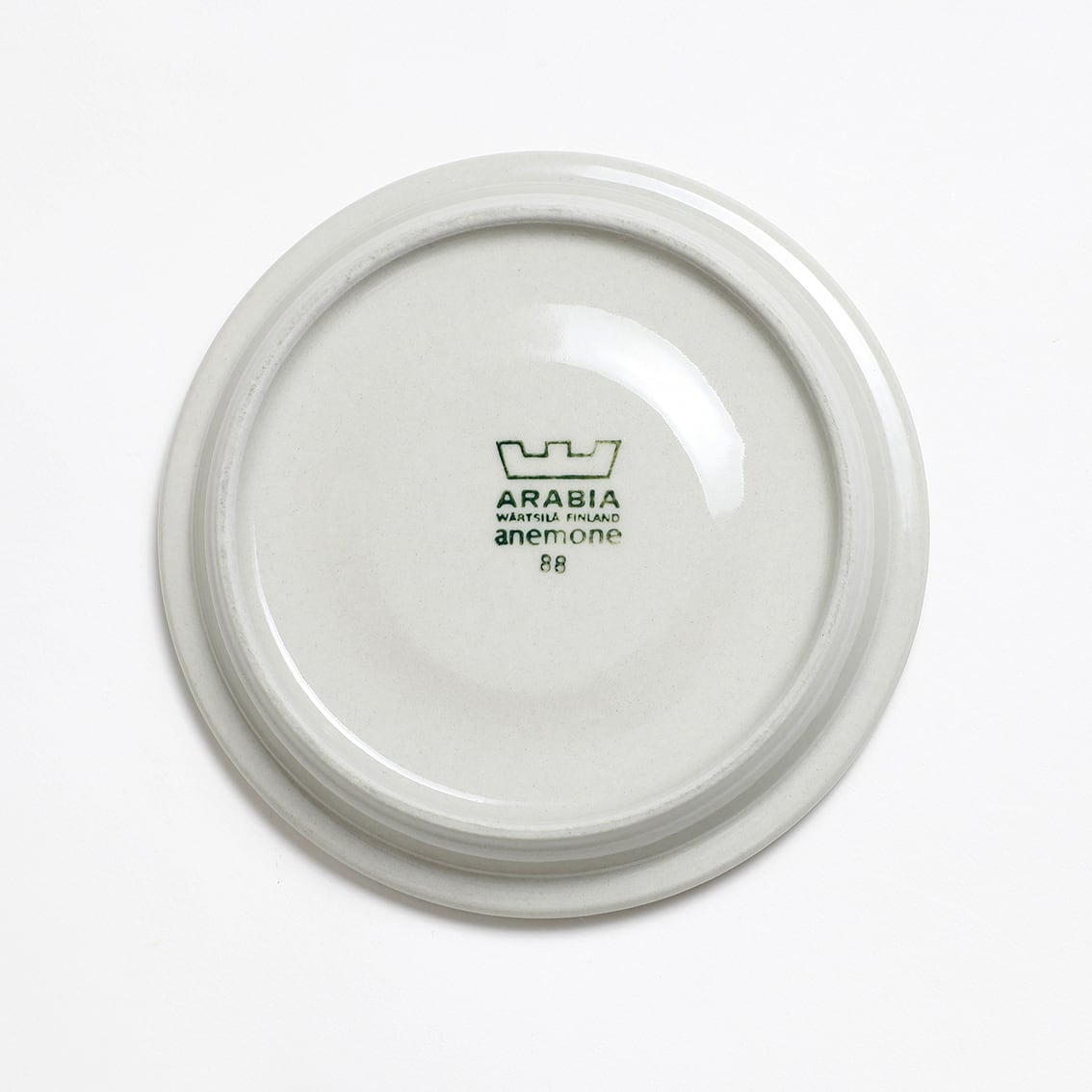 アラビアの代表的なデザイナーUlla Procope(ウラ・プロコペ)がデザインしたAnemone(アネモネ)シリーズの70mm コーヒー カップ&ソーサーです。ブルーベリーのような深みのある青が大変美しく、一点一点手描きされた丸い花柄は大胆で伸びやか。絵筆の余韻を感じさせるやわらかな絵柄をソーサーの太いストライプがきりりと引き締めています。