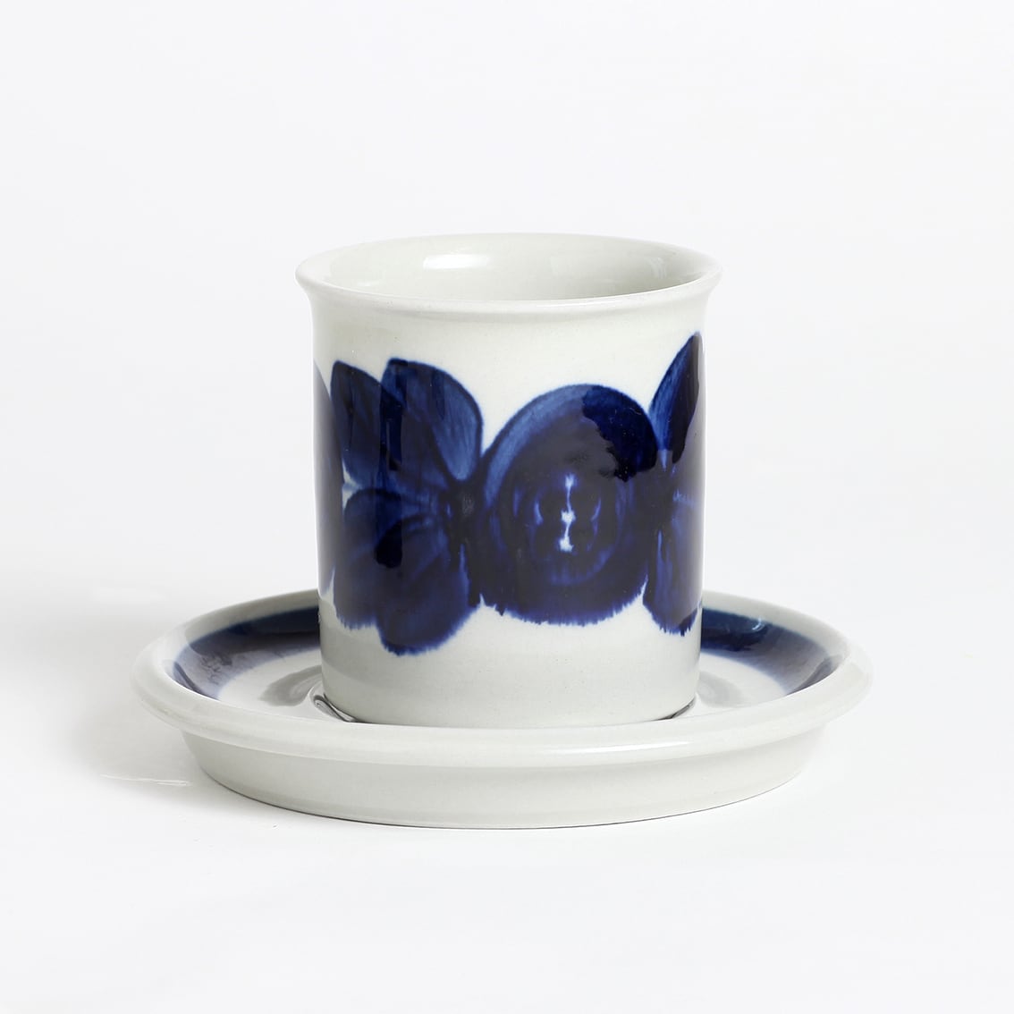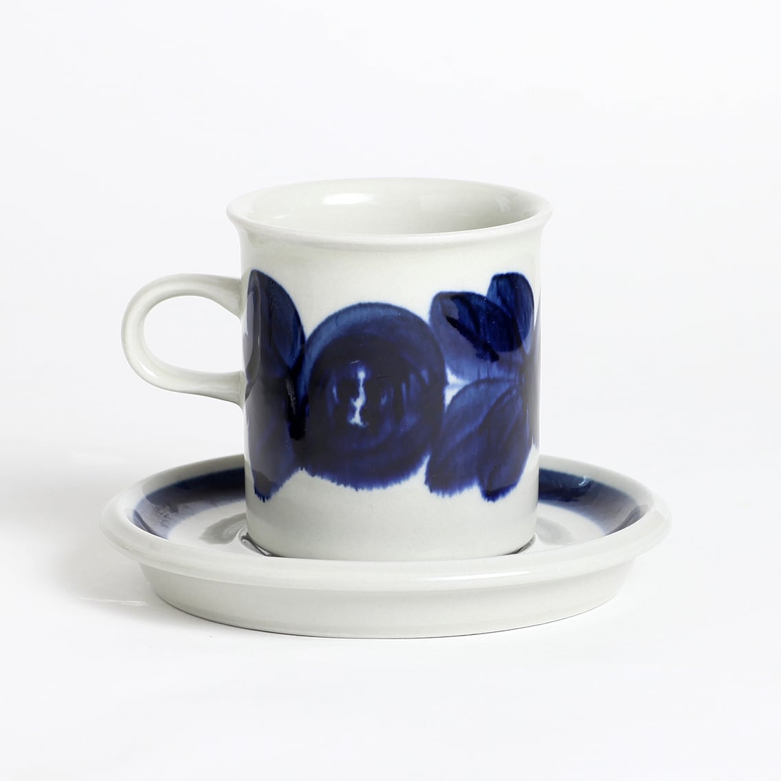 アラビアの代表的なデザイナーUlla Procope(ウラ・プロコペ)がデザインしたAnemone(アネモネ)シリーズの70mm コーヒー カップ&ソーサーです。ブルーベリーのような深みのある青が大変美しく、一点一点手描きされた丸い花柄は大胆で伸びやか。絵筆の余韻を感じさせるやわらかな絵柄をソーサーの太いストライプがきりりと引き締めています。