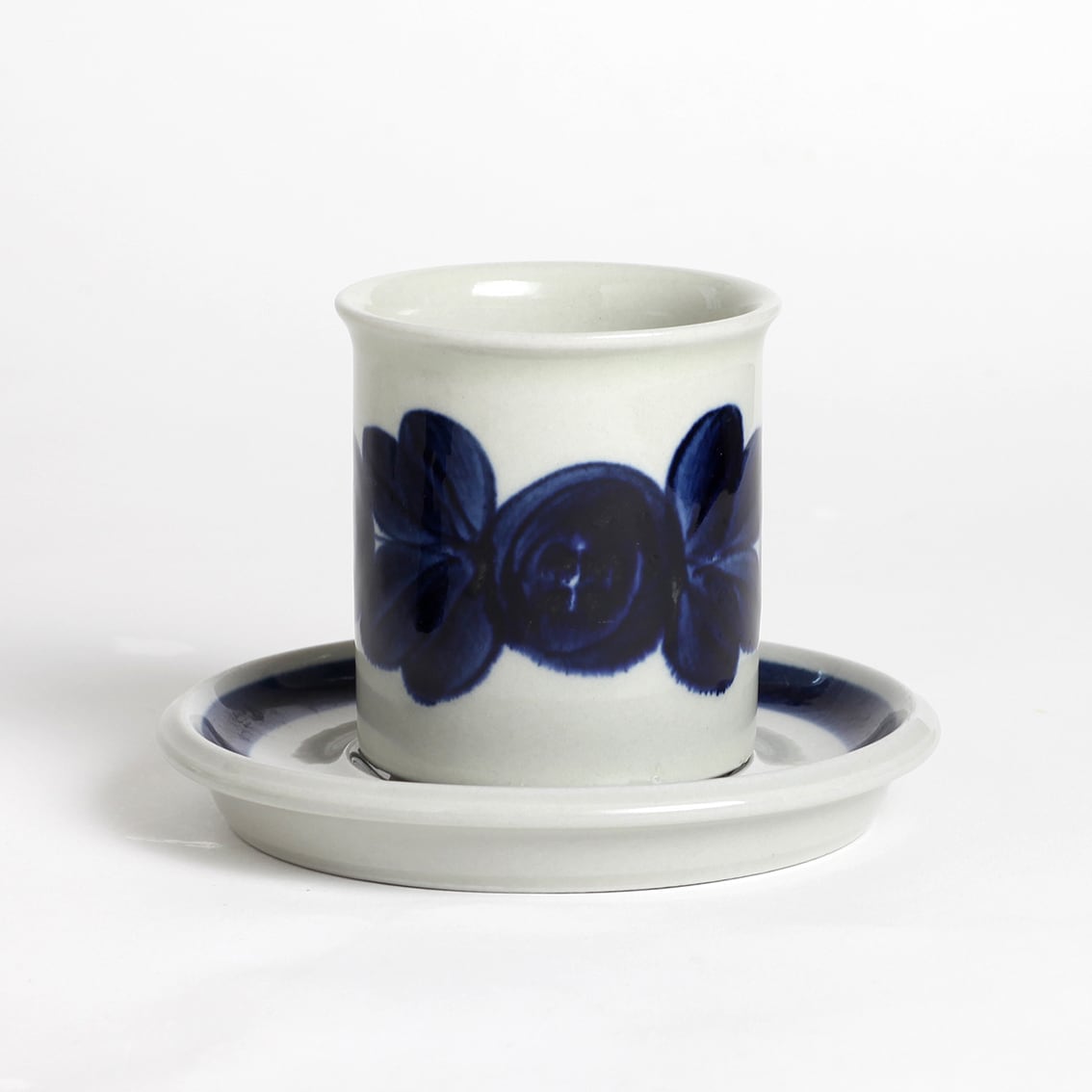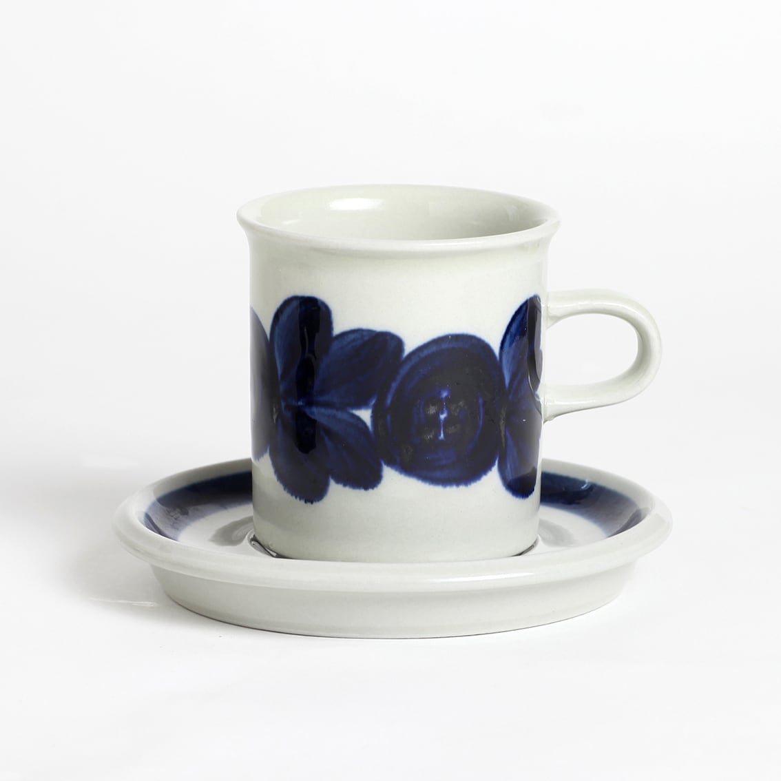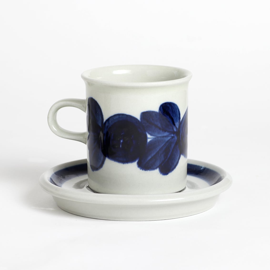 アラビアの代表的なデザイナーUlla Procope(ウラ・プロコペ)がデザインしたAnemone(アネモネ)シリーズの70mm コーヒー カップ&ソーサーです。ブルーベリーのような深みのある青が大変美しく、一点一点手描きされた丸い花柄は大胆で伸びやか。絵筆の余韻を感じさせるやわらかな絵柄をソーサーの太いストライプがきりりと引き締めています。