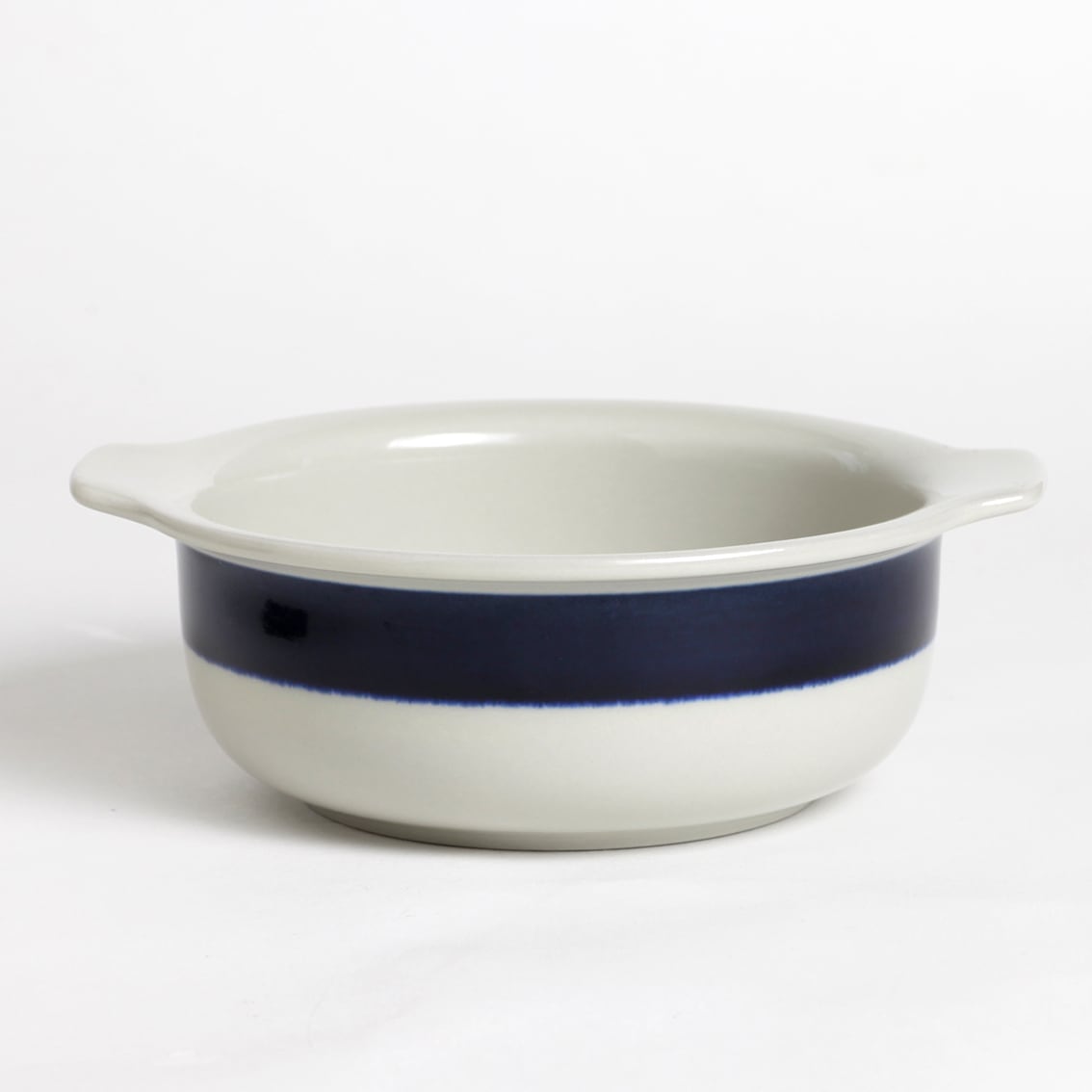 両耳の付いたフォルムに、ブルーベリー色の太い帯。手描きならではの濃淡とにじみが優しさを醸し出しています。