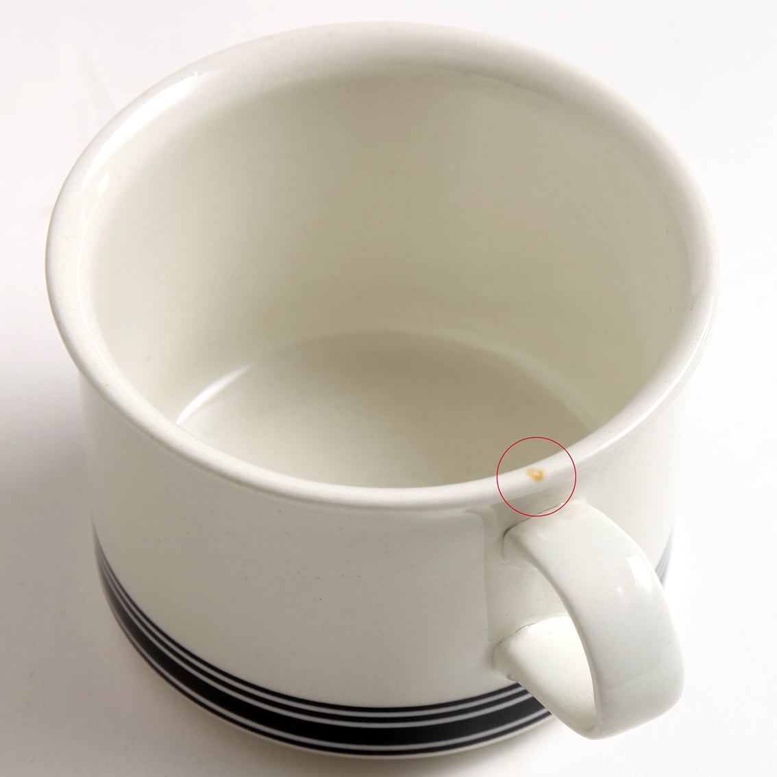 ・カップに写真のような小さな茶色の焼き染みが見られます。