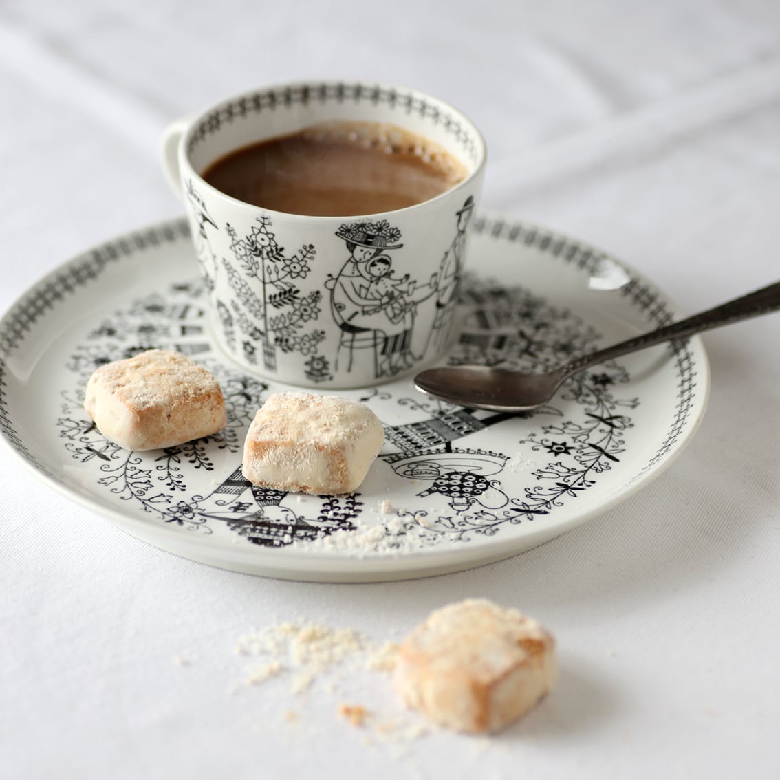 プレートにコーヒーカップとお菓子を載せてテレビ鑑賞を楽しむ、いわゆる《TVカップ&ソーサー》はフィンランドでは1960年代以降に人気を博しました。