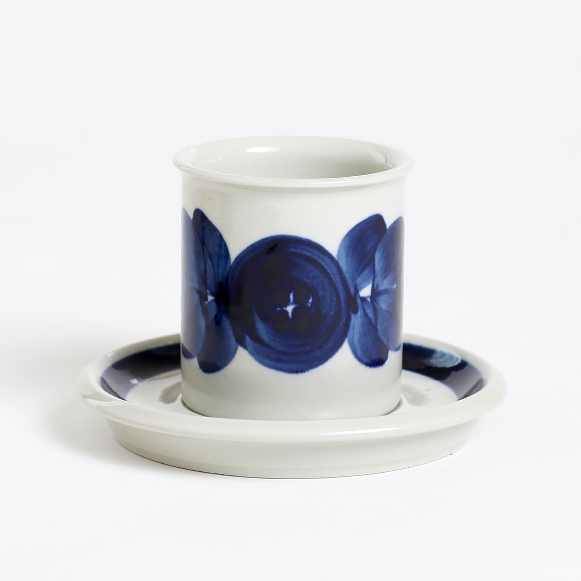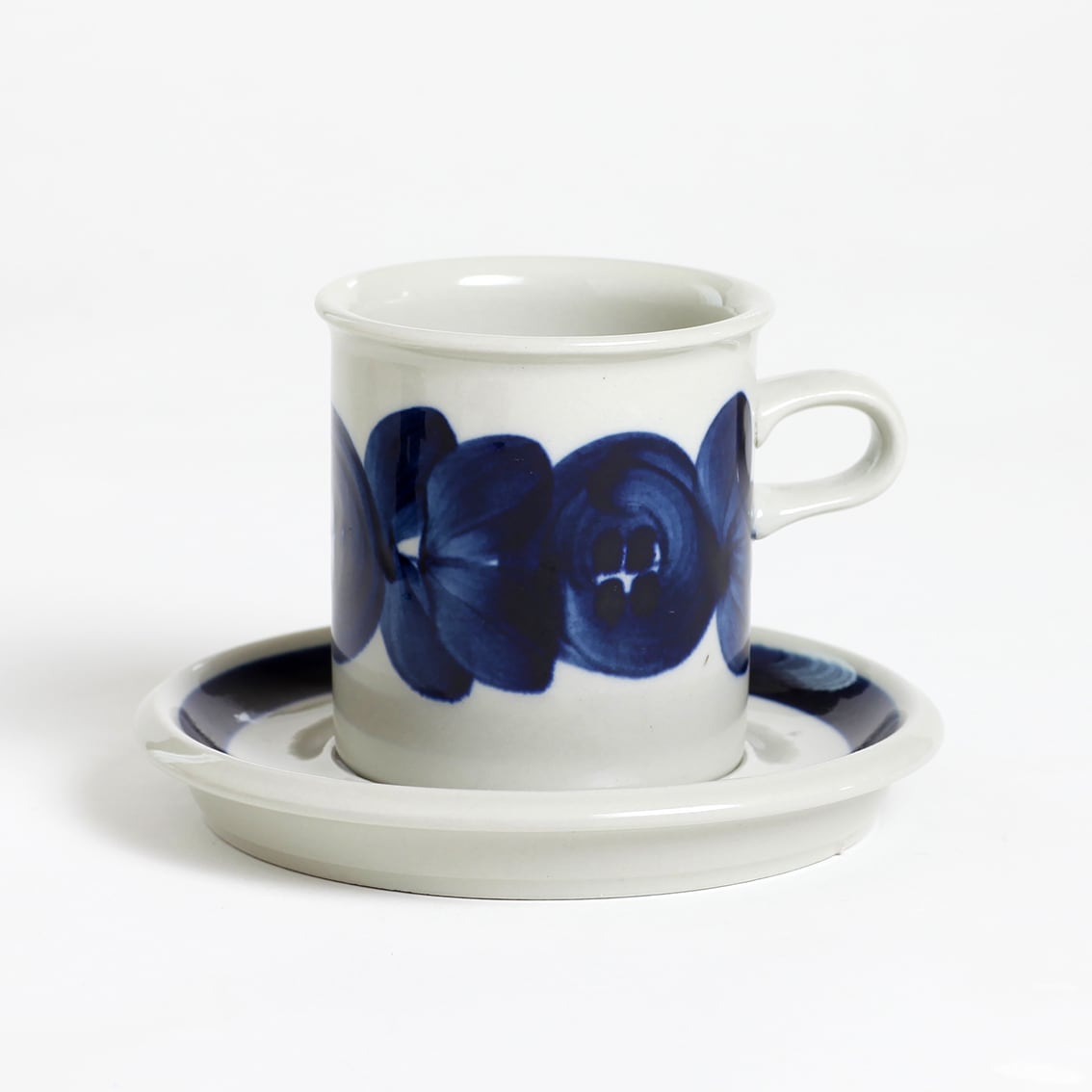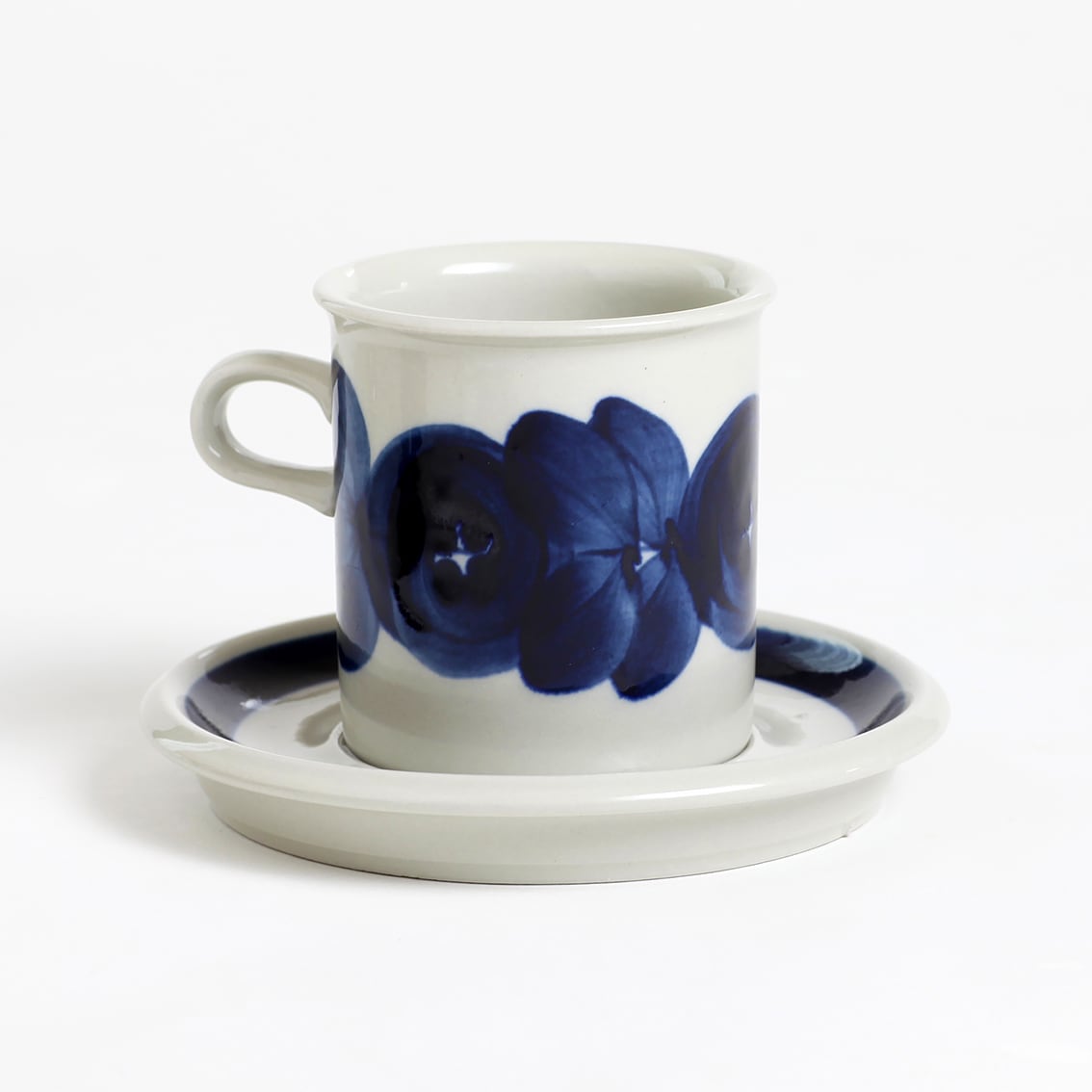 アラビアの代表的なデザイナーUlla Procope(ウラ・プロコペ)がデザインしたAnemone(アネモネ)シリーズの70mm コーヒー カップ&ソーサーです。ブルーベリーのような深みのある青が大変美しく、一点一点手描きされた丸い花柄は大胆で伸びやか。絵筆の余韻を感じさせるやわらかな絵柄をソーサーの太いストライプがきりりと引き締めています。