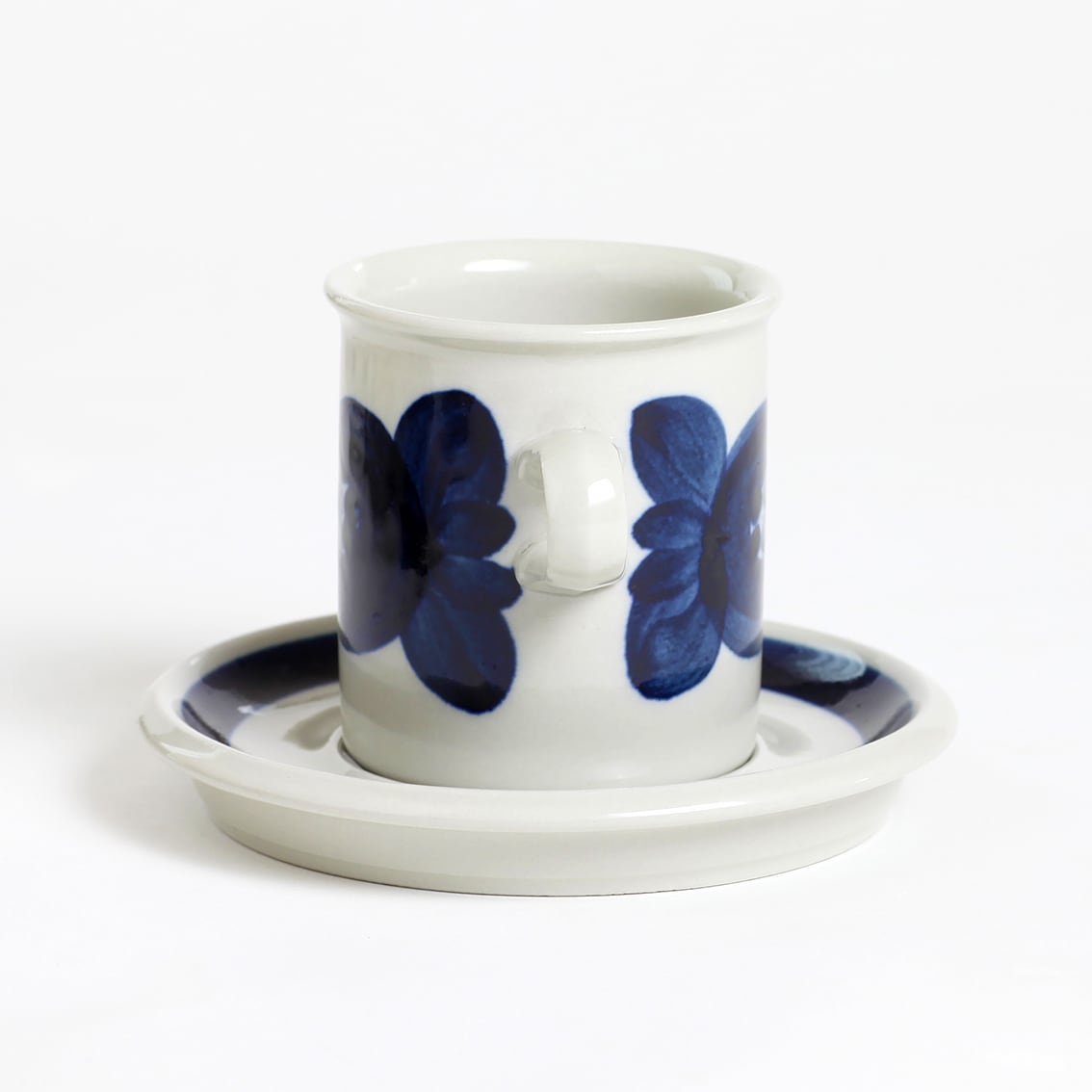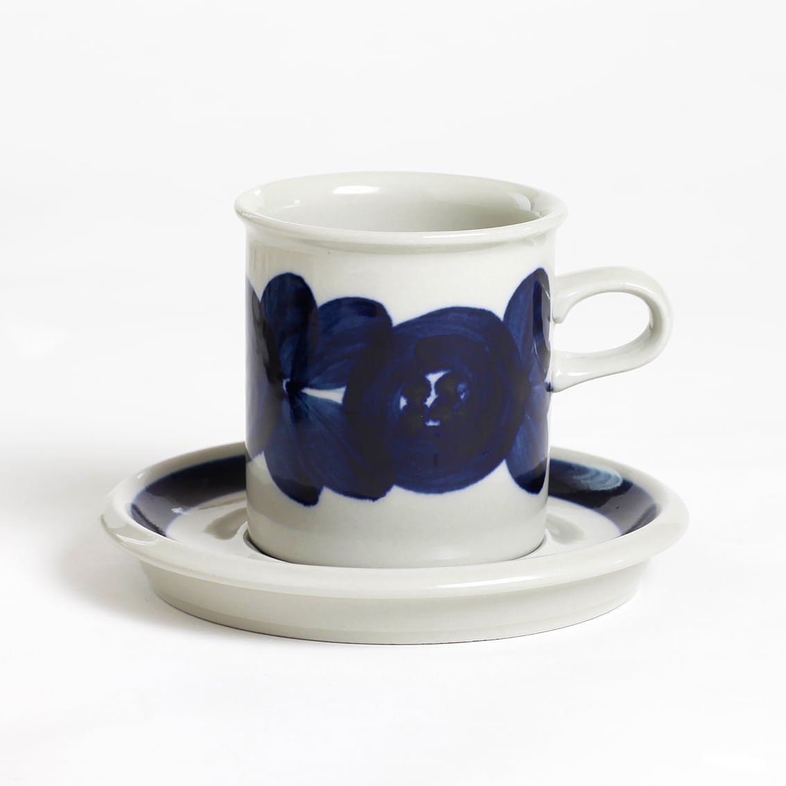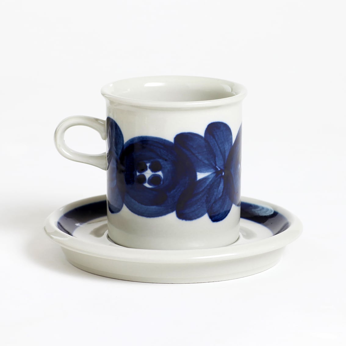 アラビアの代表的なデザイナーUlla Procope(ウラ・プロコペ)がデザインしたAnemone(アネモネ)シリーズの70mm コーヒー カップ&ソーサーです。ブルーベリーのような深みのある青が大変美しく、一点一点手描きされた丸い花柄は大胆で伸びやか。絵筆の余韻を感じさせるやわらかな絵柄をソーサーの太いストライプがきりりと引き締めています。