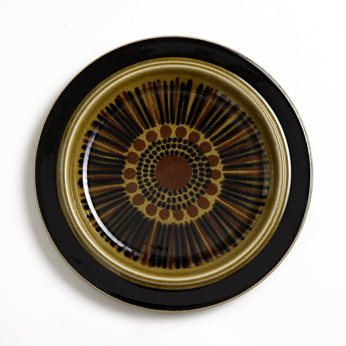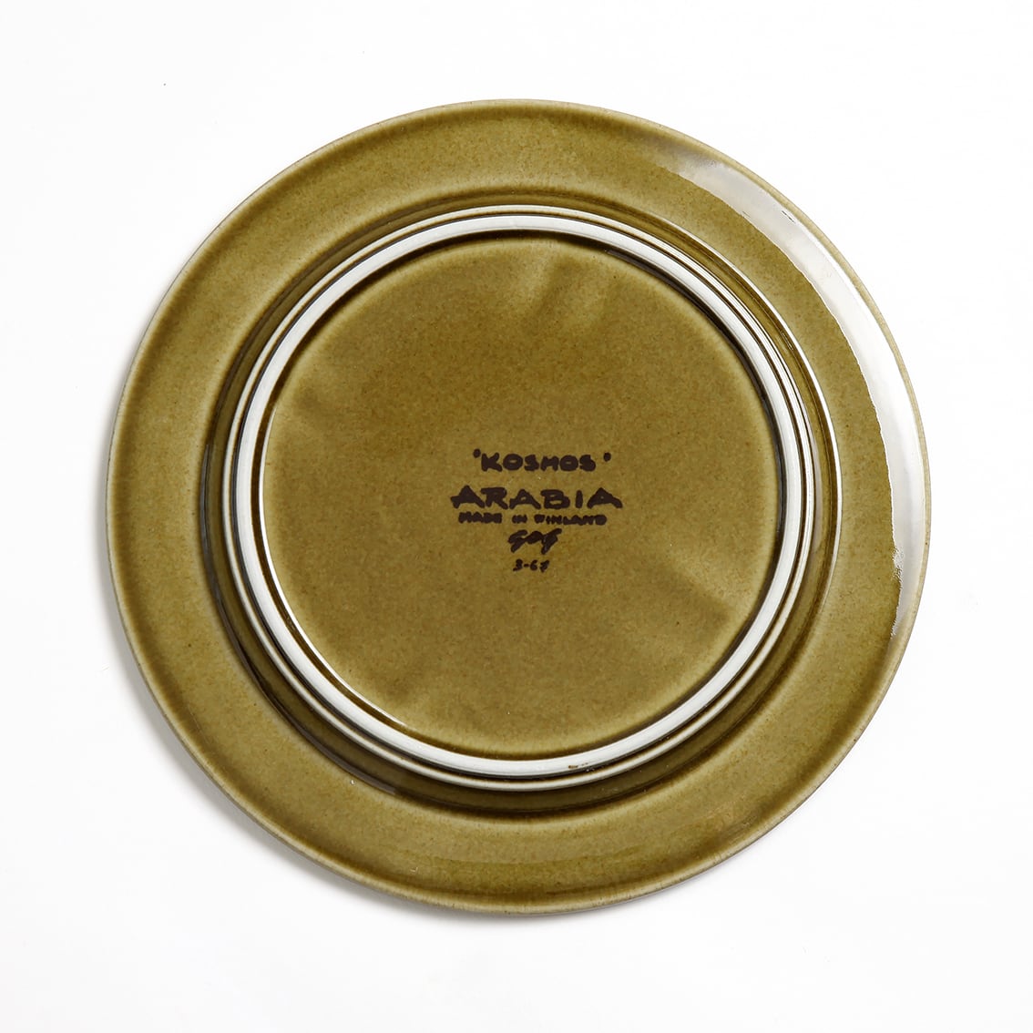 デザインはグンヴァル・オリン・グラングヴィスト。オリーブブラウンの地にランダムな縦のストライプが手描きされており、ソーサーは花のように見えます。フォルムデザインはウラ・プロコペ。コスモスシリーズは2色展開で青も作られました。こちらは落ち着いた色調で温かみのあるブラウン系です。