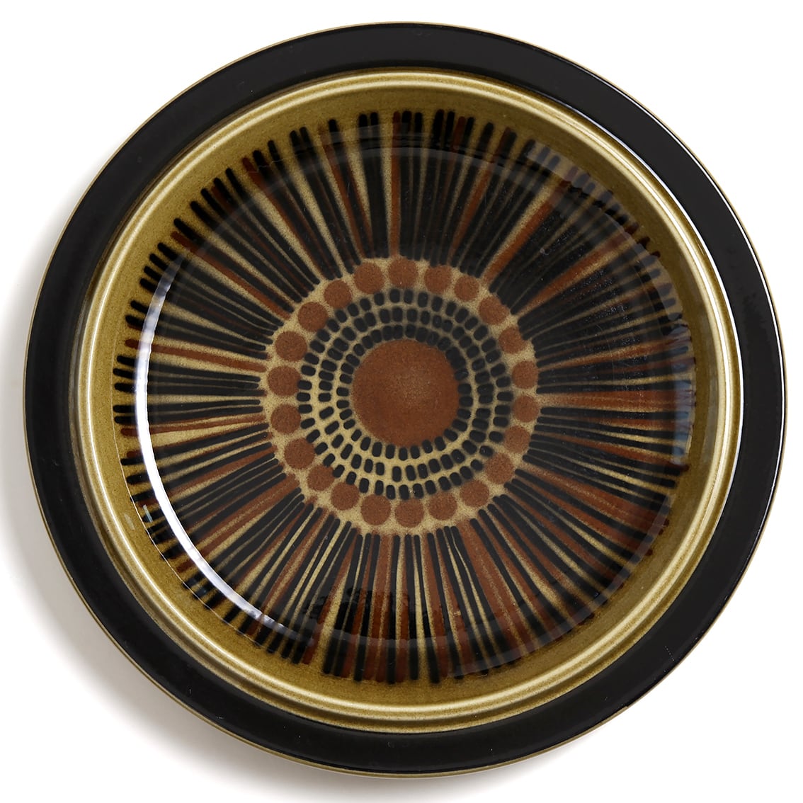 デザインはグンヴァル・オリン・グラングヴィスト。オリーブブラウンの地にランダムな縦のストライプが手描きされており、ソーサーは花のように見えます。フォルムデザインはウラ・プロコペ。コスモスシリーズは2色展開で青も作られました。こちらは落ち着いた色調で温かみのあるブラウン系です。