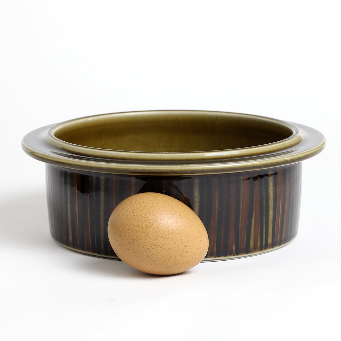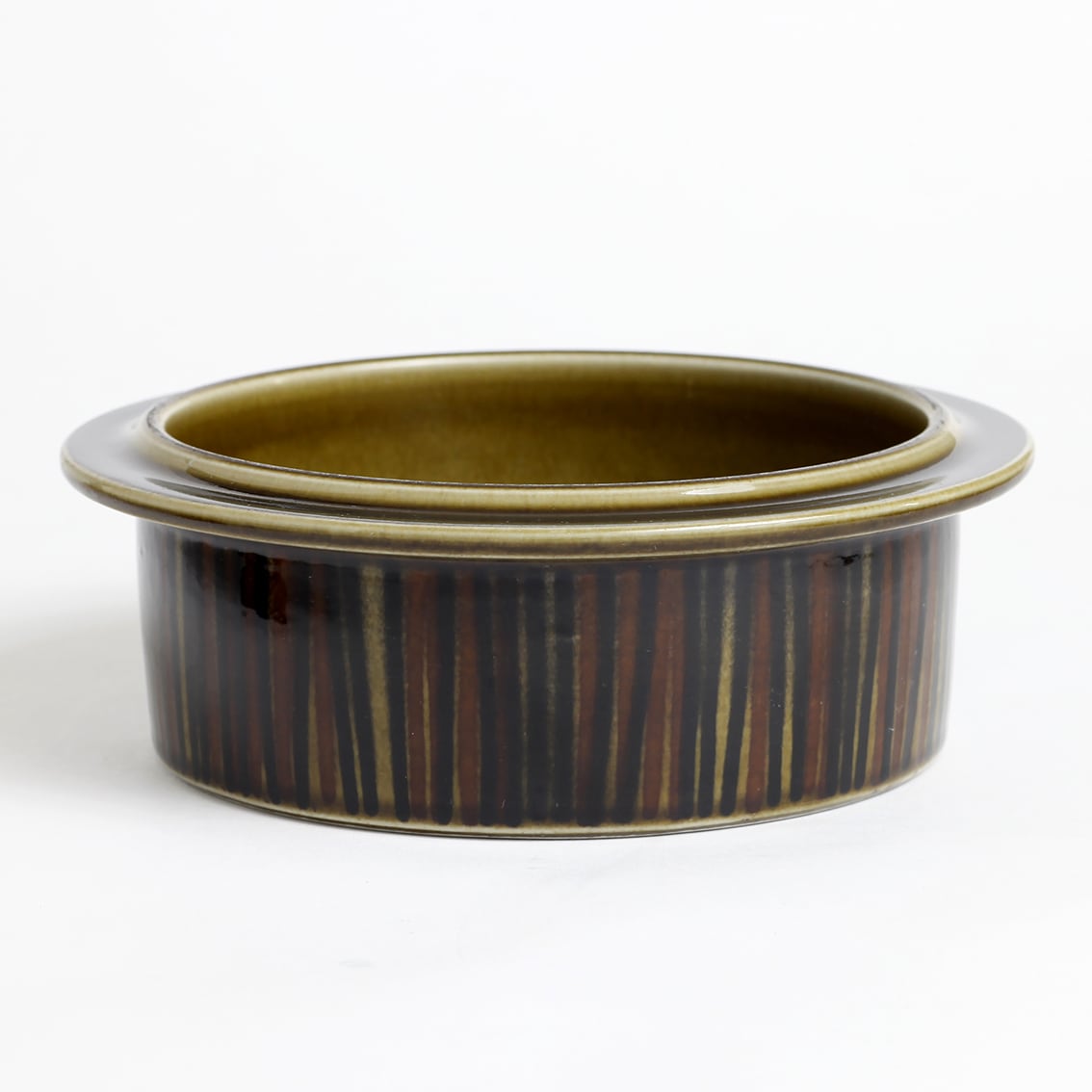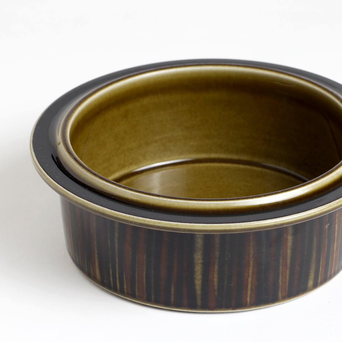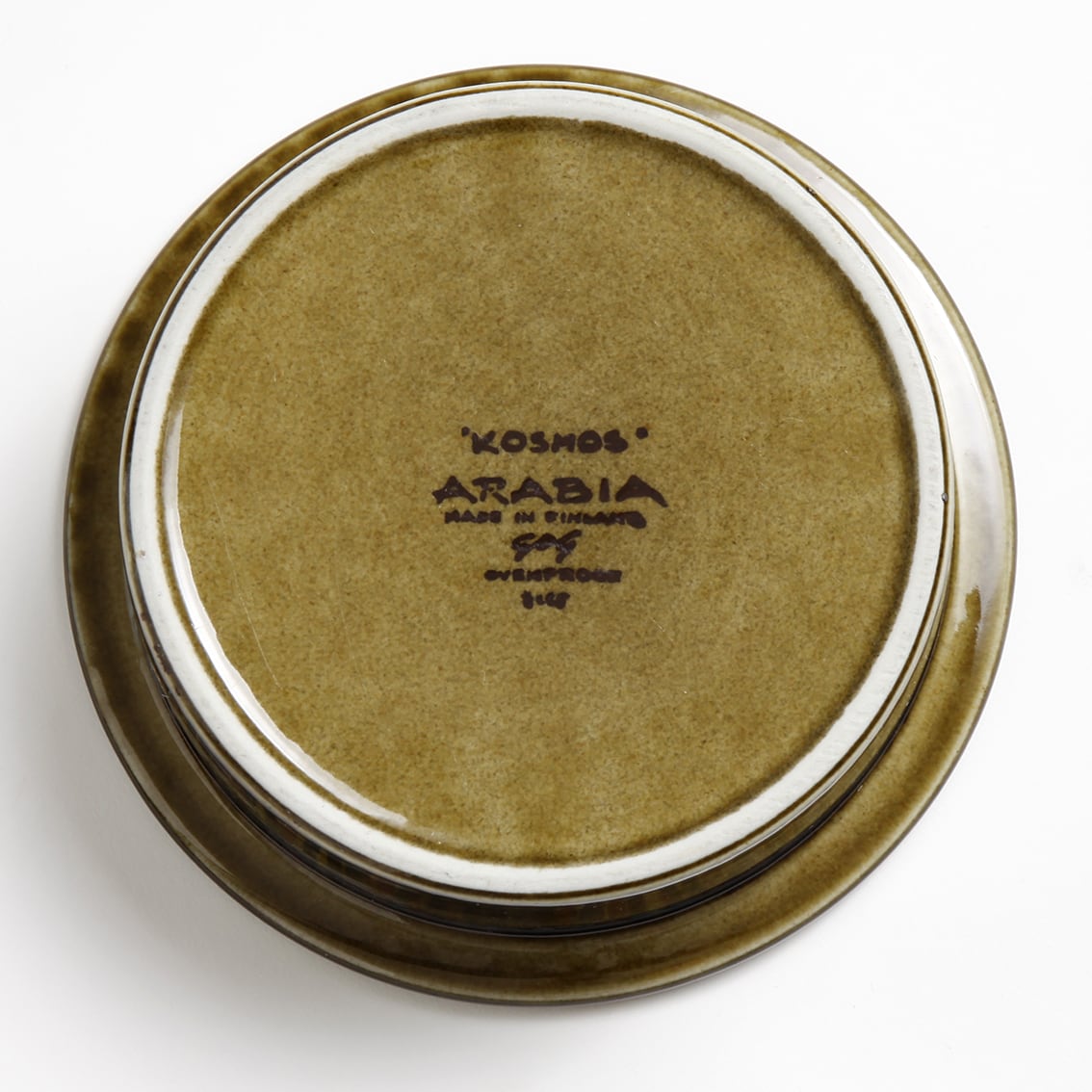 デザインはグンヴァル・オリン・グラングヴィスト。オリーブブラウンの地にランダムな縦のストライプが手描きされており、ソーサーは花のように見えます。フォルムデザインはウラ・プロコペ。コスモスシリーズは2色展開で青も作られました。こちらは落ち着いた色調で温かみのあるブラウン系です。
