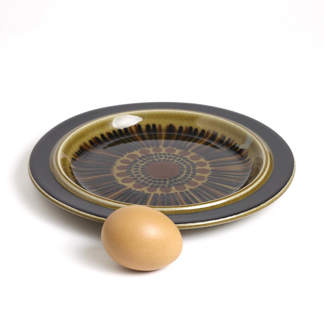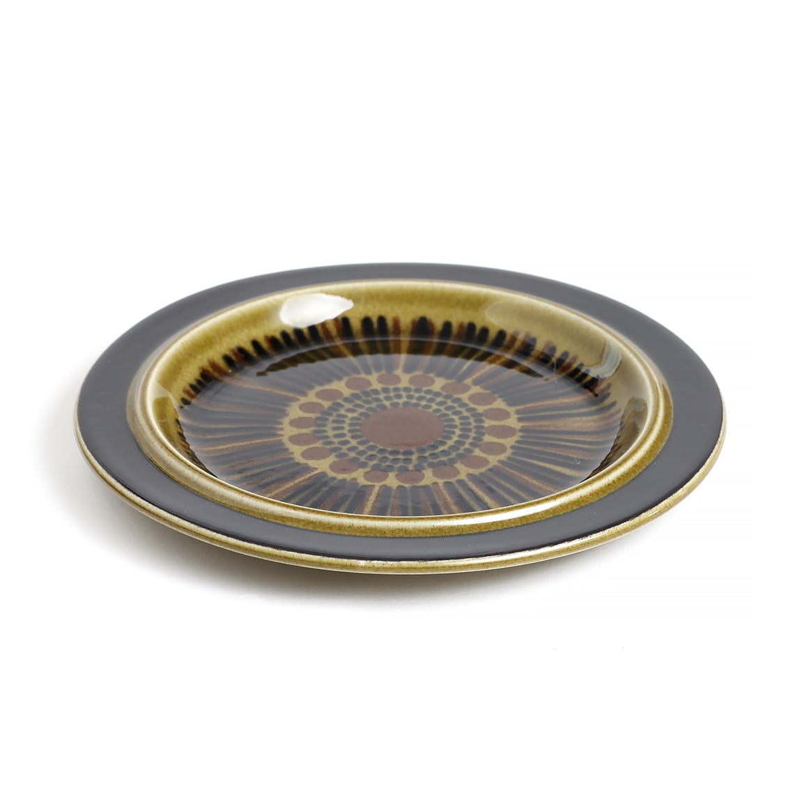 デザインはグンヴァル・オリン・グラングヴィスト。オリーブブラウンの地にランダムな縦のストライプが手描きされており、ソーサーは花のように見えます。フォルムデザインはウラ・プロコペ。コスモスシリーズは2色展開で青も作られました。こちらは落ち着いた色調で温かみのあるブラウン系です。