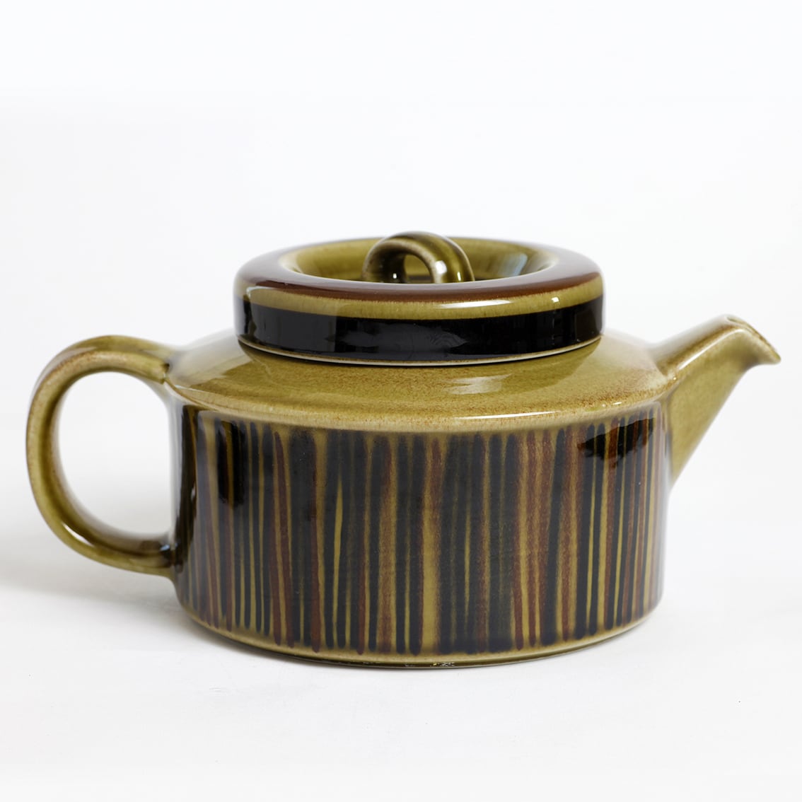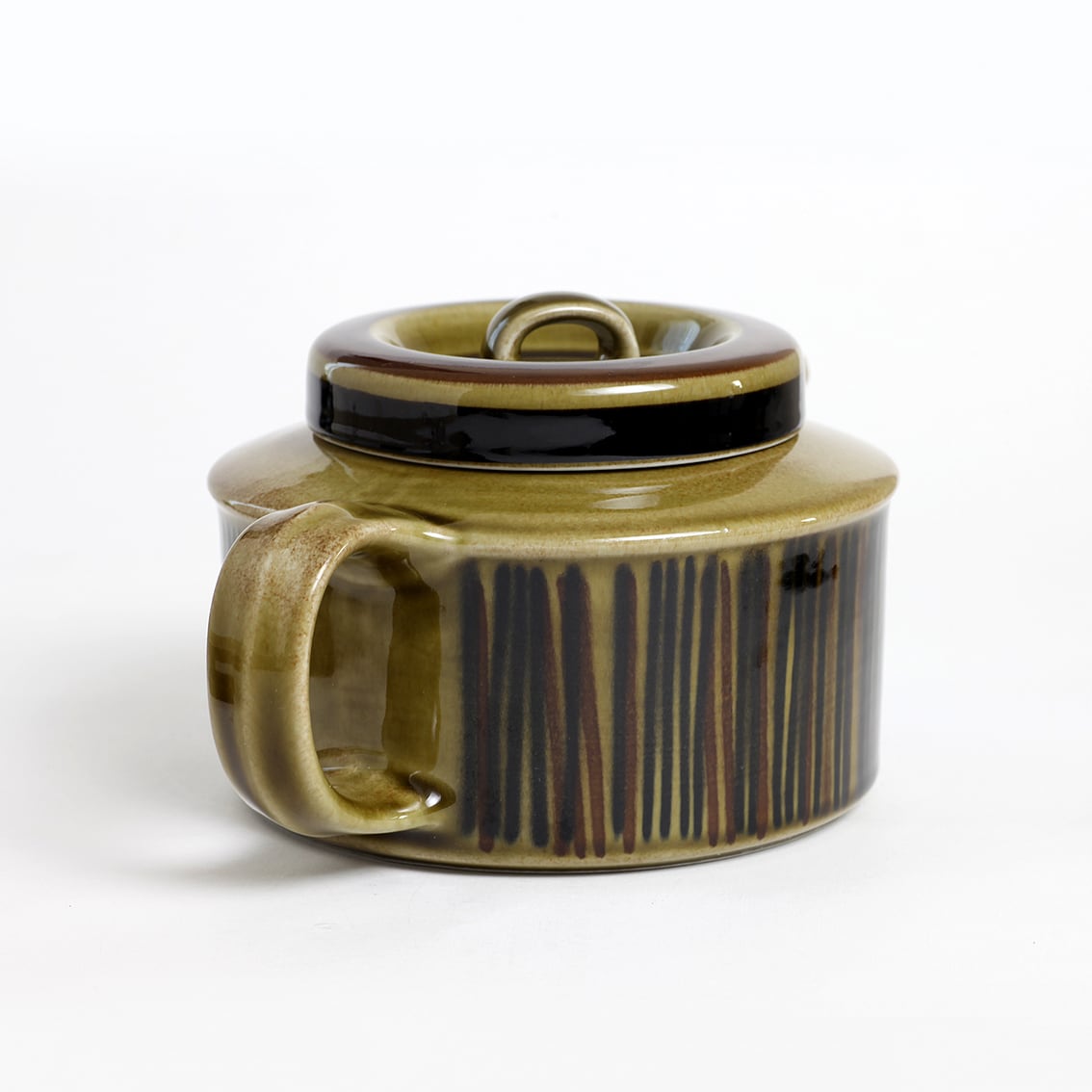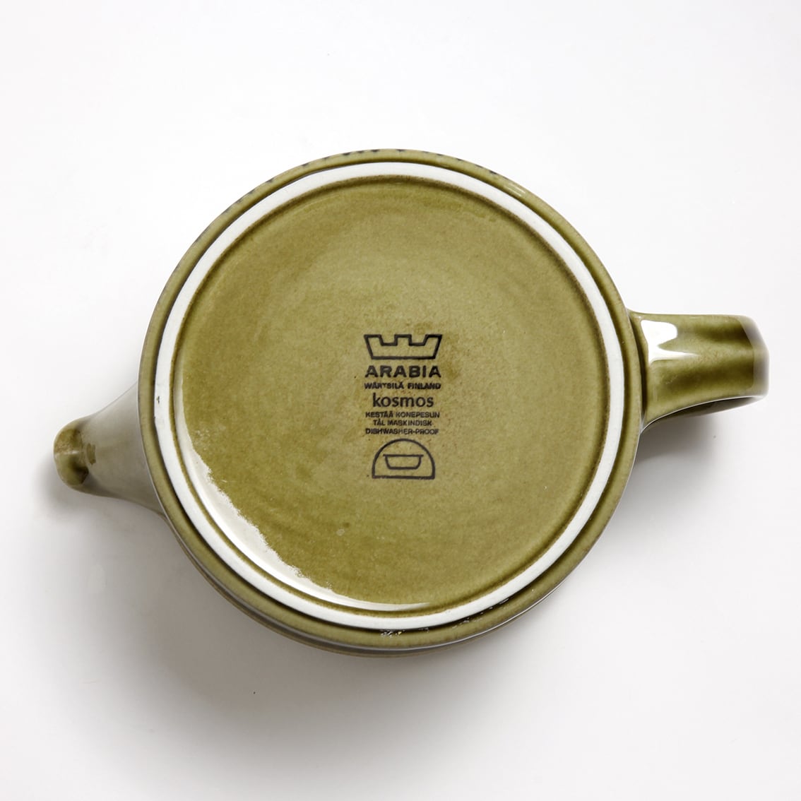 デザインはグンヴァル・オリン・グラングヴィスト。オリーブブラウンの地にランダムな縦のストライプが手描きされています。フォルムデザインはウラ・プロコペ。コスモスシリーズは2色展開で青も作られました。こちらは落ち着いた色調で温かみのあるブラウン系です。