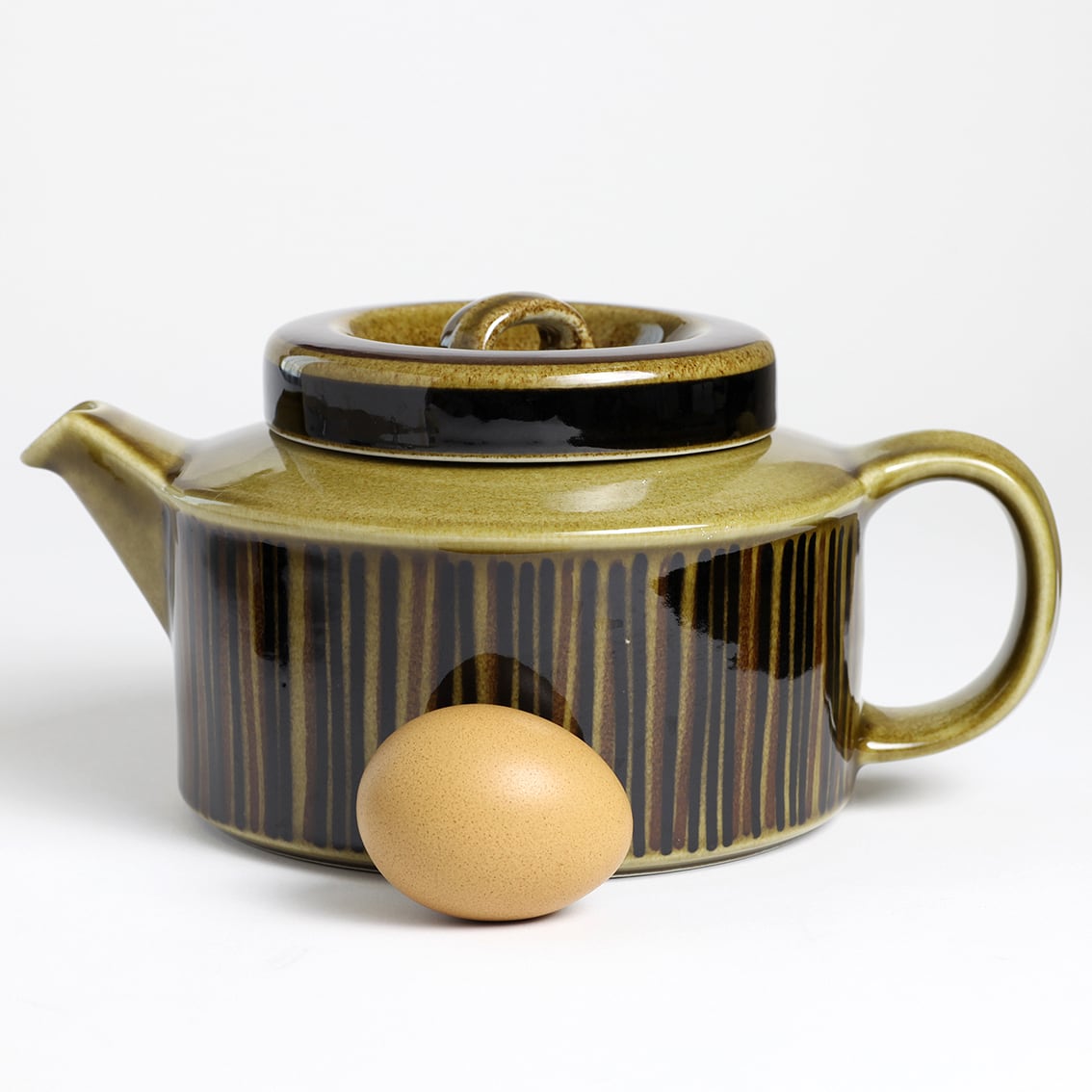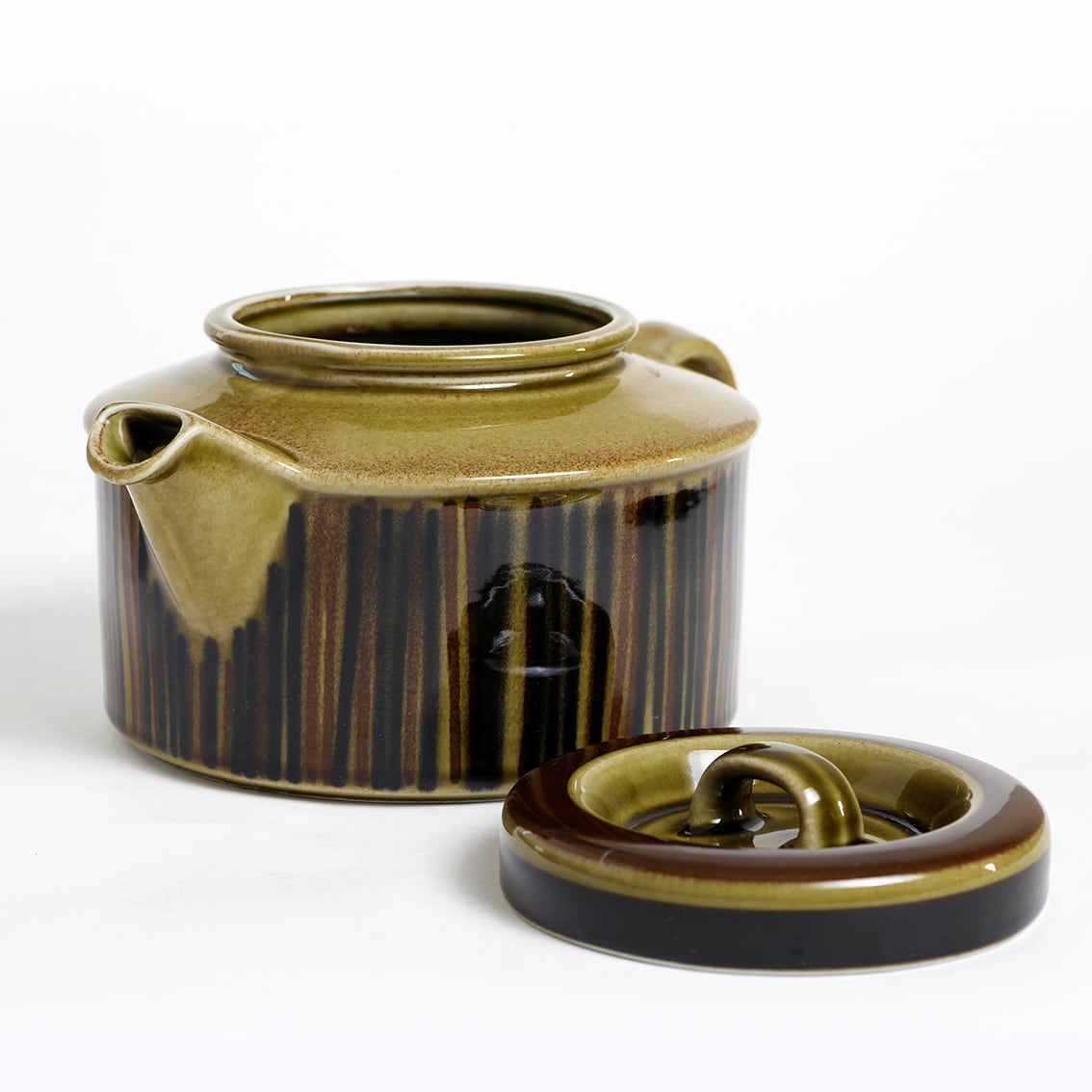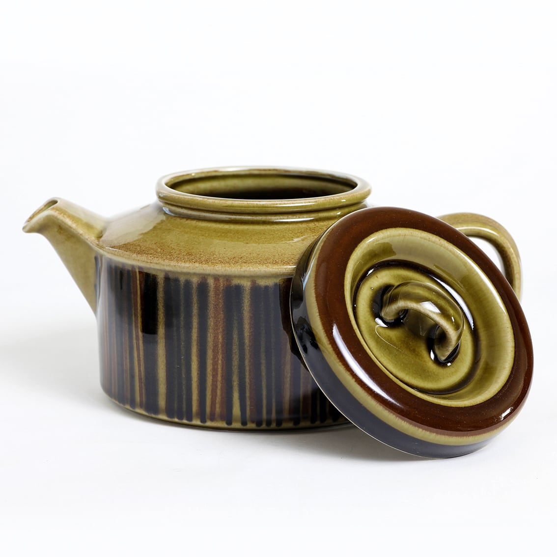 デザインはグンヴァル・オリン・グラングヴィスト。オリーブブラウンの地にランダムな縦のストライプが手描きされています。フォルムデザインはウラ・プロコペ。コスモスシリーズは2色展開で青も作られました。こちらは落ち着いた色調で温かみのあるブラウン系です。
