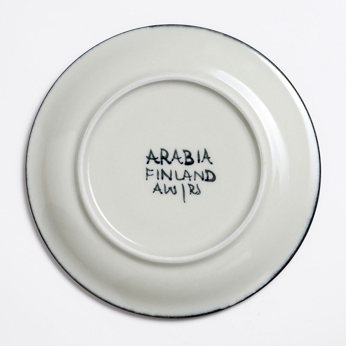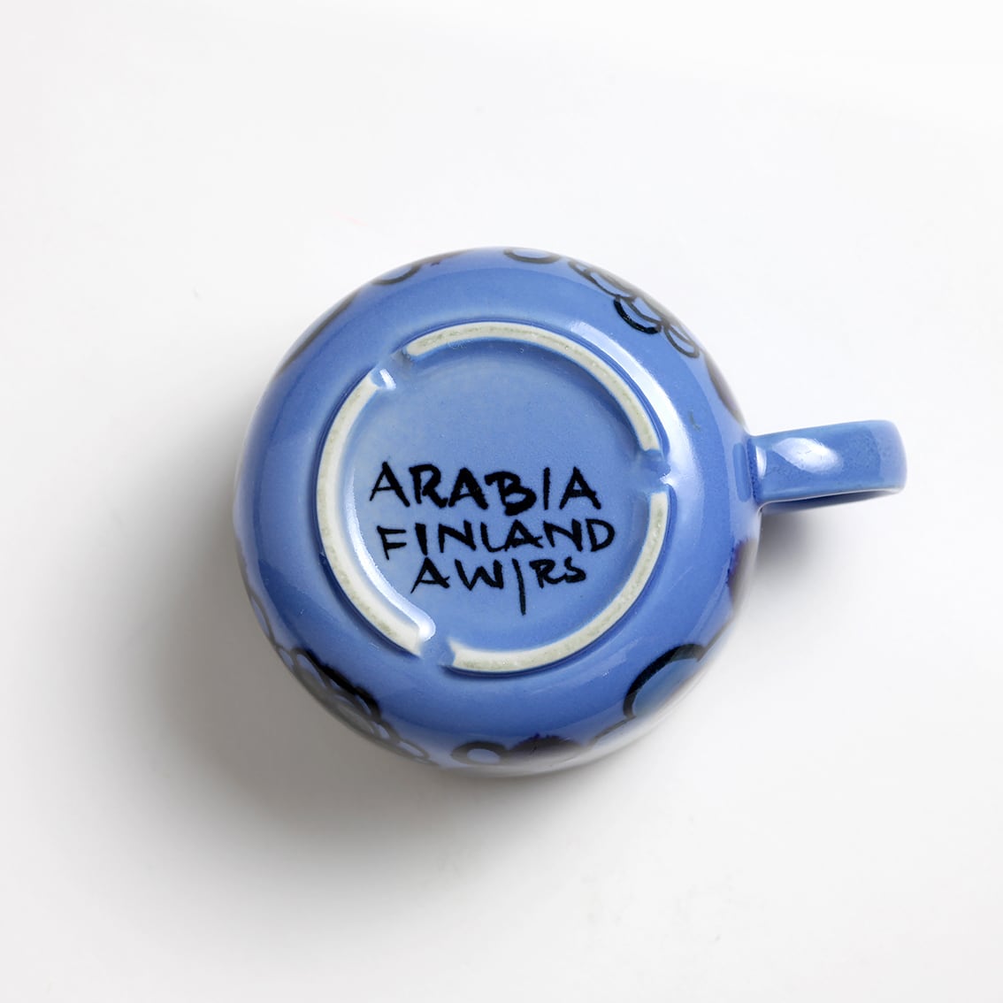 底面に記された「AW/RS」のAWはアンヤ・ウィンクヴィスト、右のイニシャルは手描きの彩色を担当した職人です。