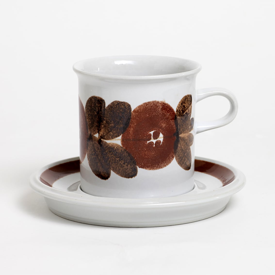 アラビアの代表的なデザイナーUlla Procope(ウラ・プロコペ)によるデザインのRosmarin(ロスマリン)シリーズのマグカップ&ソーサーです。ロスマリンはフィンランド語でローズマリーの意味。ウラ・プロコペによる女性らしいデザインで花の絵柄は一点一点手描きされており、使うほどに愛着の増す、優しく温かな雰囲気が魅力です。