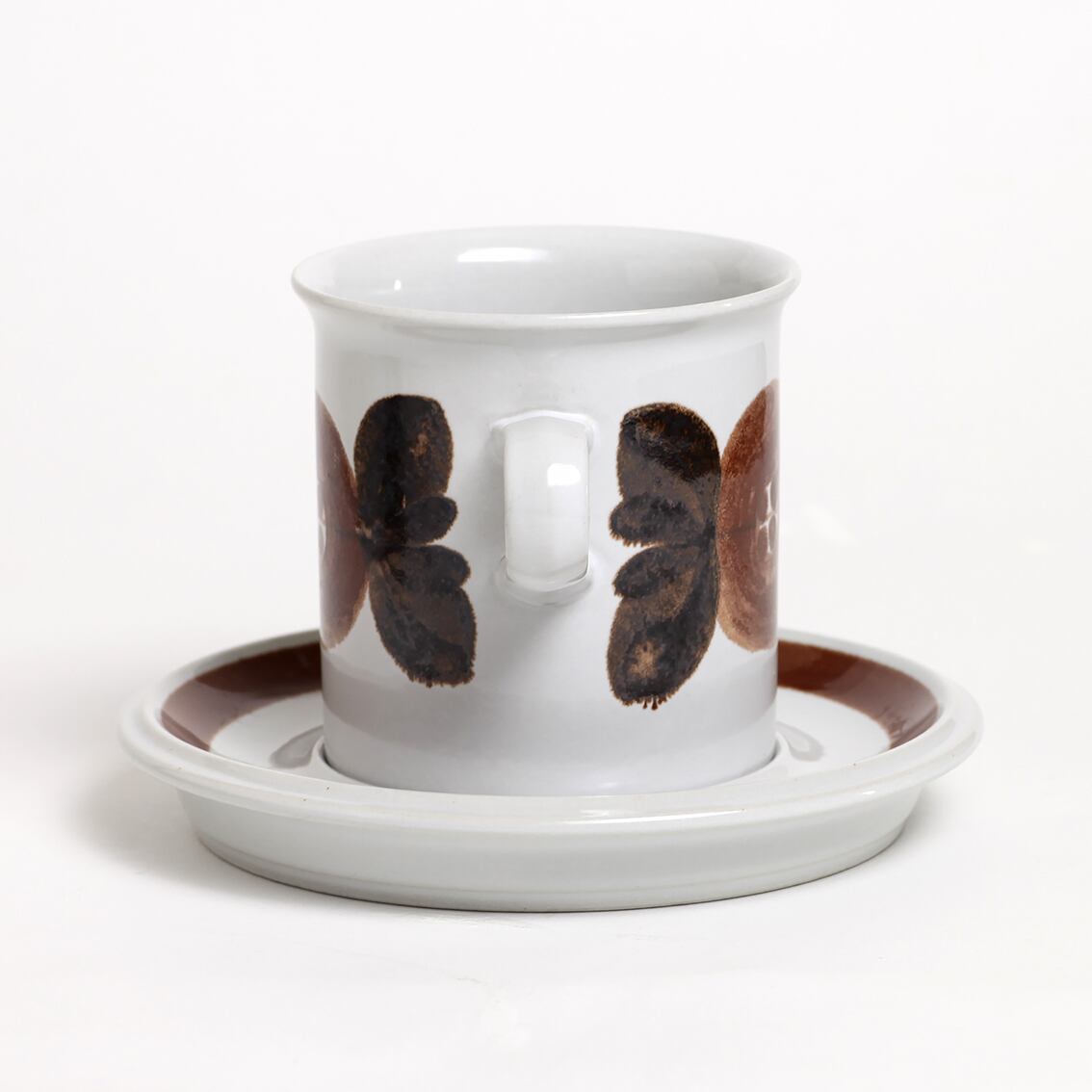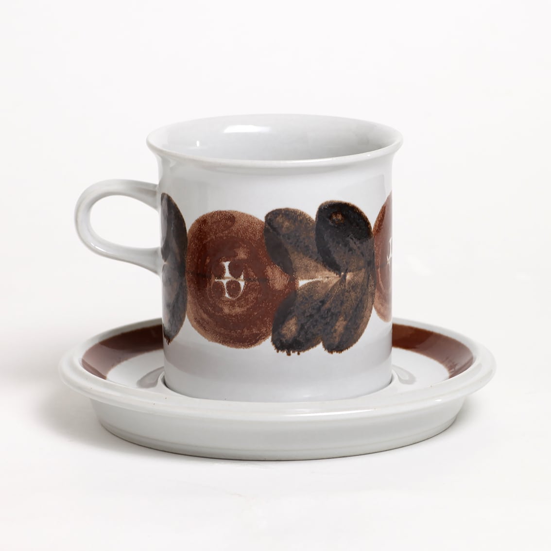 アラビアの代表的なデザイナーUlla Procope(ウラ・プロコペ)によるデザインのRosmarin(ロスマリン)シリーズのマグカップ&ソーサーです。ロスマリンはフィンランド語でローズマリーの意味。ウラ・プロコペによる女性らしいデザインで花の絵柄は一点一点手描きされており、使うほどに愛着の増す、優しく温かな雰囲気が魅力です。
