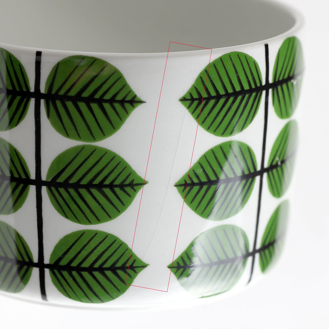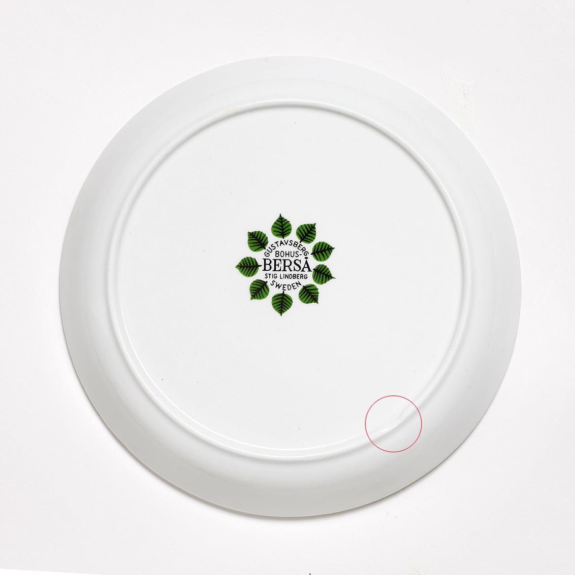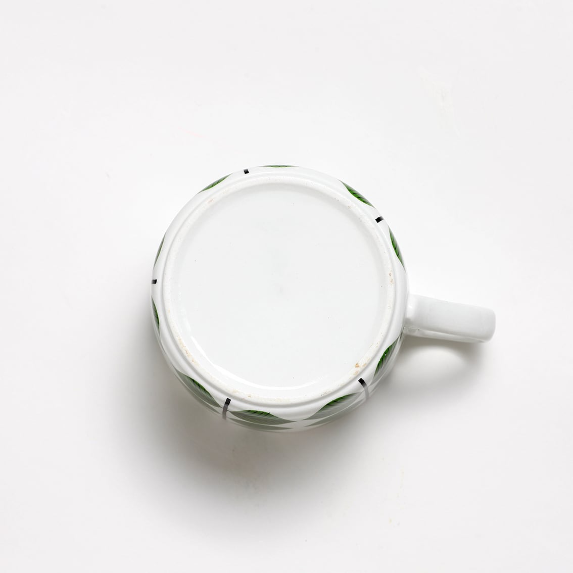 Berså(ベルソー/日本ではベルサとも呼ばれます)は庭園などの小さな「あずまや」を意味するスウェーデン語。お茶の時間(FIKA)をイメージして命名されたのでしょうか。巨匠Stig Lindberg(スティグ・リンドベリ)の作品の中でもとくに人気が高いことで知られる Berså は、明快に描かれた緑の葉と白地のコントラストが爽やかな北欧デザインの代名詞ともいえる傑作シリーズです。ヴィンテージベルサのカップ&ソーサーはコーヒーカップ、ティーカップ、モーニングカップ、チョコレートカップの4種類があります。現在復刻版が製造販売されていますがこちらはヴィンテージのティーカップ&ソーサーです。