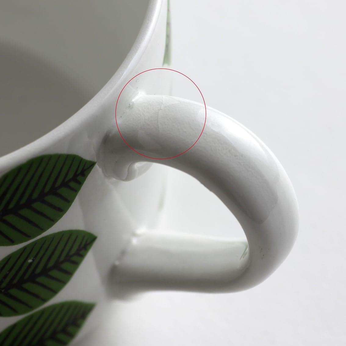 ・カップ把手の釉薬にヒビが見られます(写真参照)。