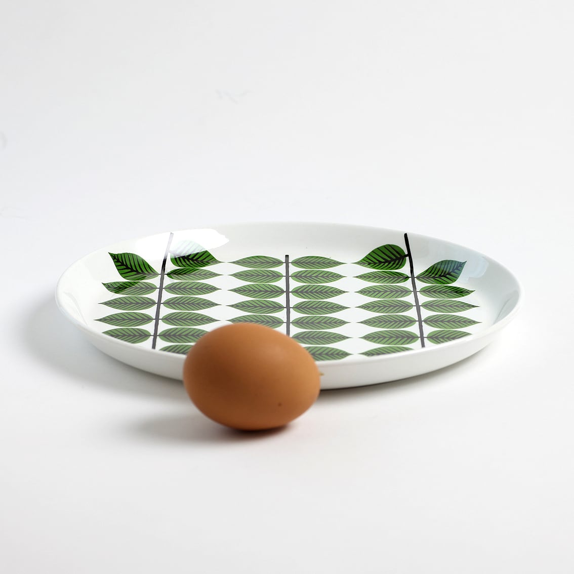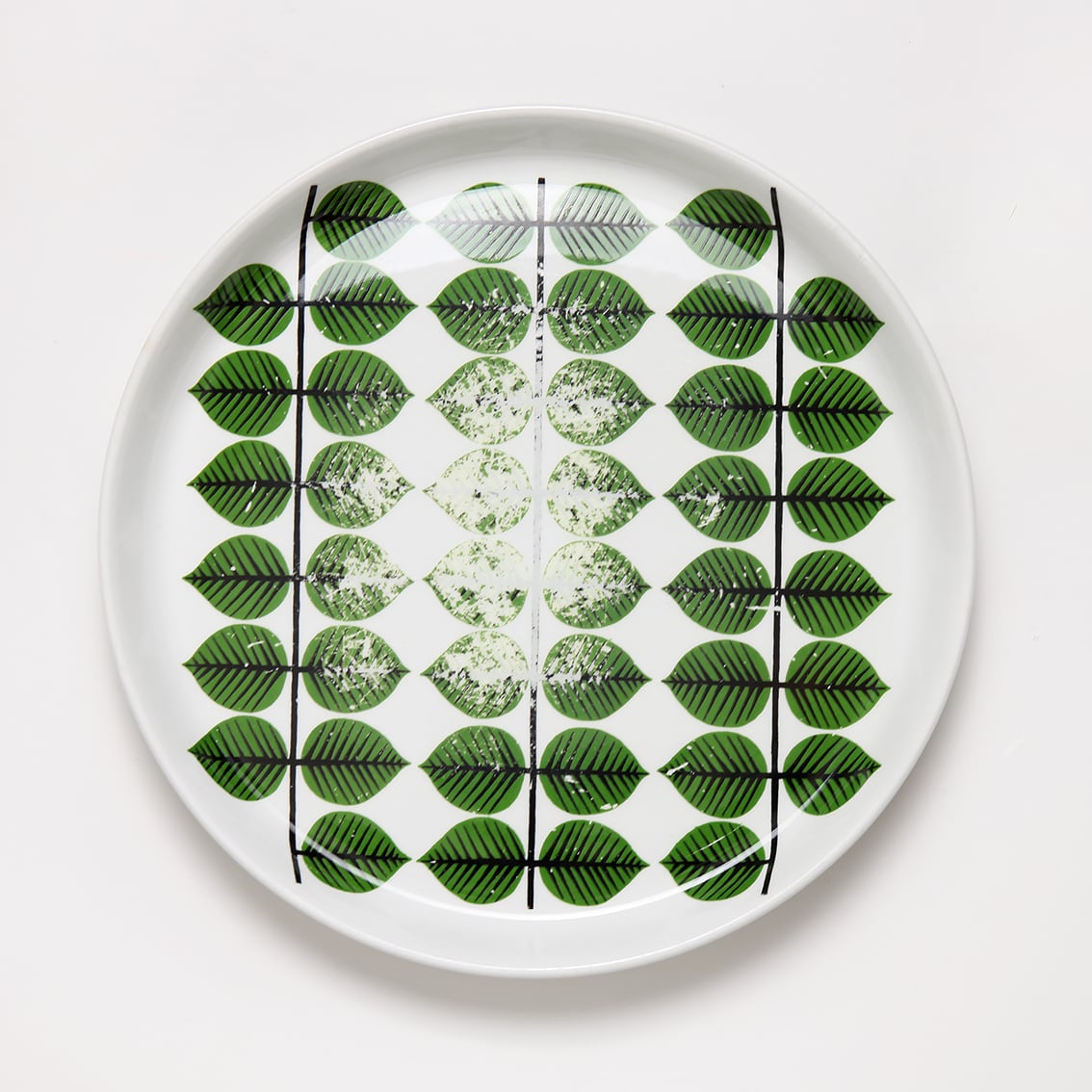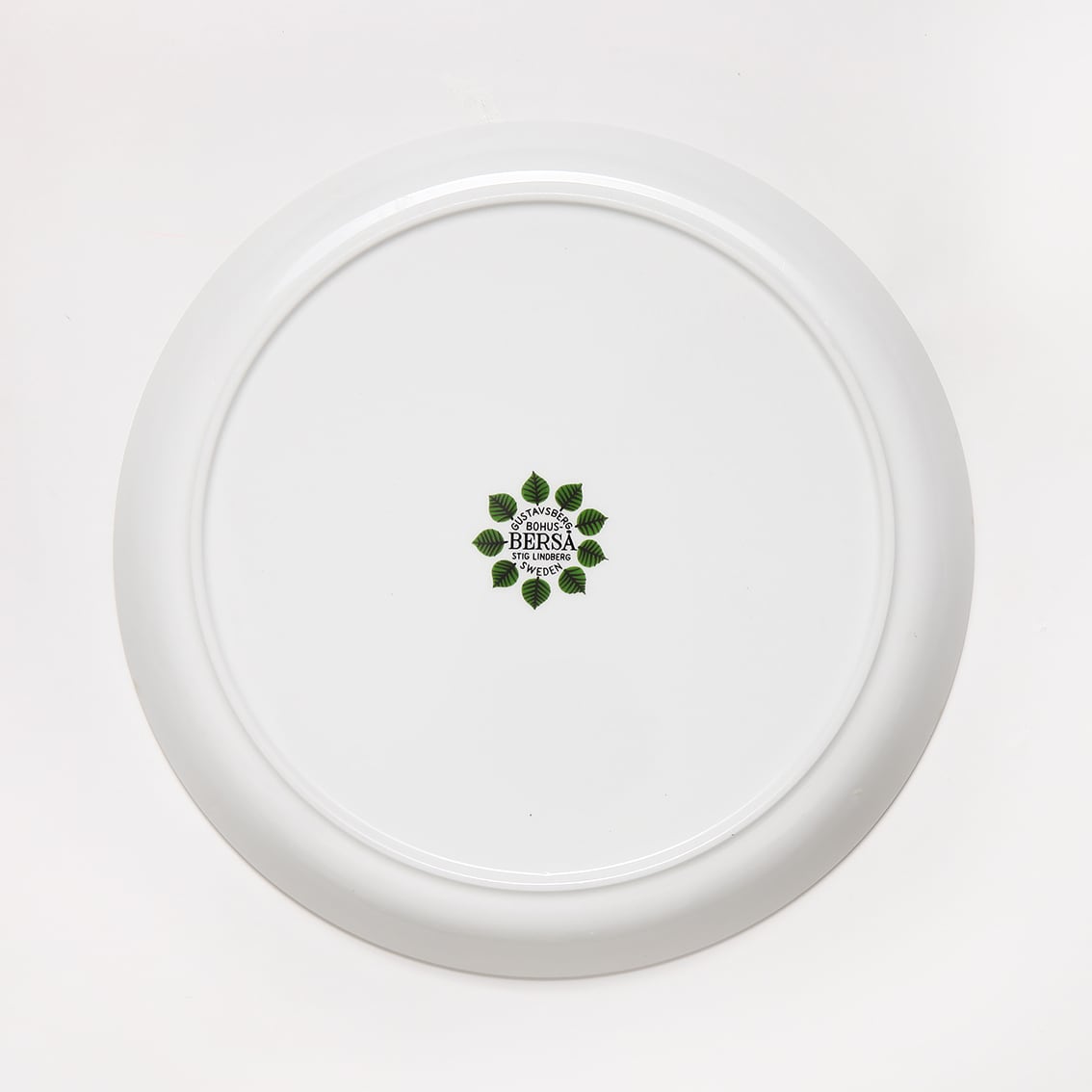 Berså(ベルソー/日本ではベルサとも呼ばれます)は庭園などの小さな「あずまや」を意味するスウェーデン語。お茶の時間(FIKA)をイメージして命名されたのでしょうか。巨匠Stig Lindberg(スティグ・リンドベリ)の作品の中でもとくに人気が高いことで知られる Berså は、明快に描かれた緑の葉と白地のコントラストが爽やかな北欧デザインの代名詞ともいえる傑作シリーズです。こちらは210mm皿。