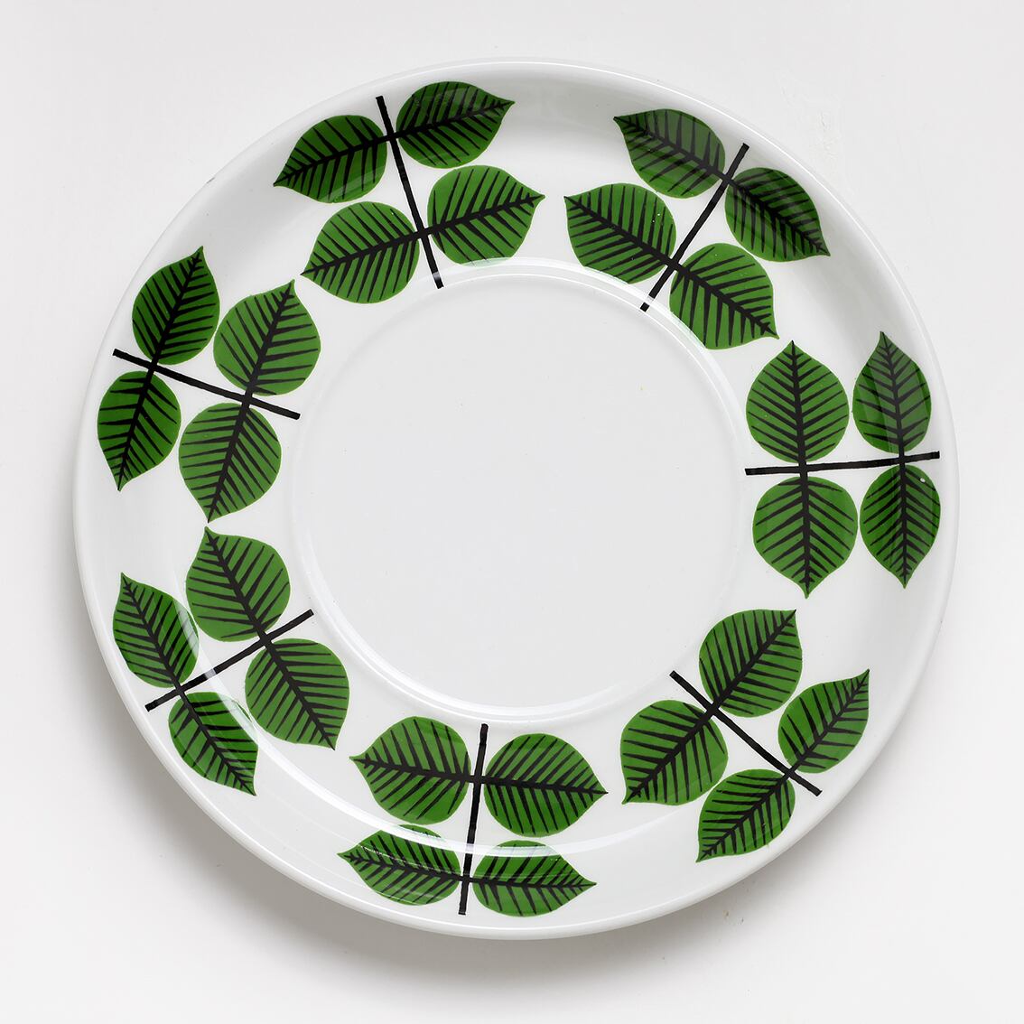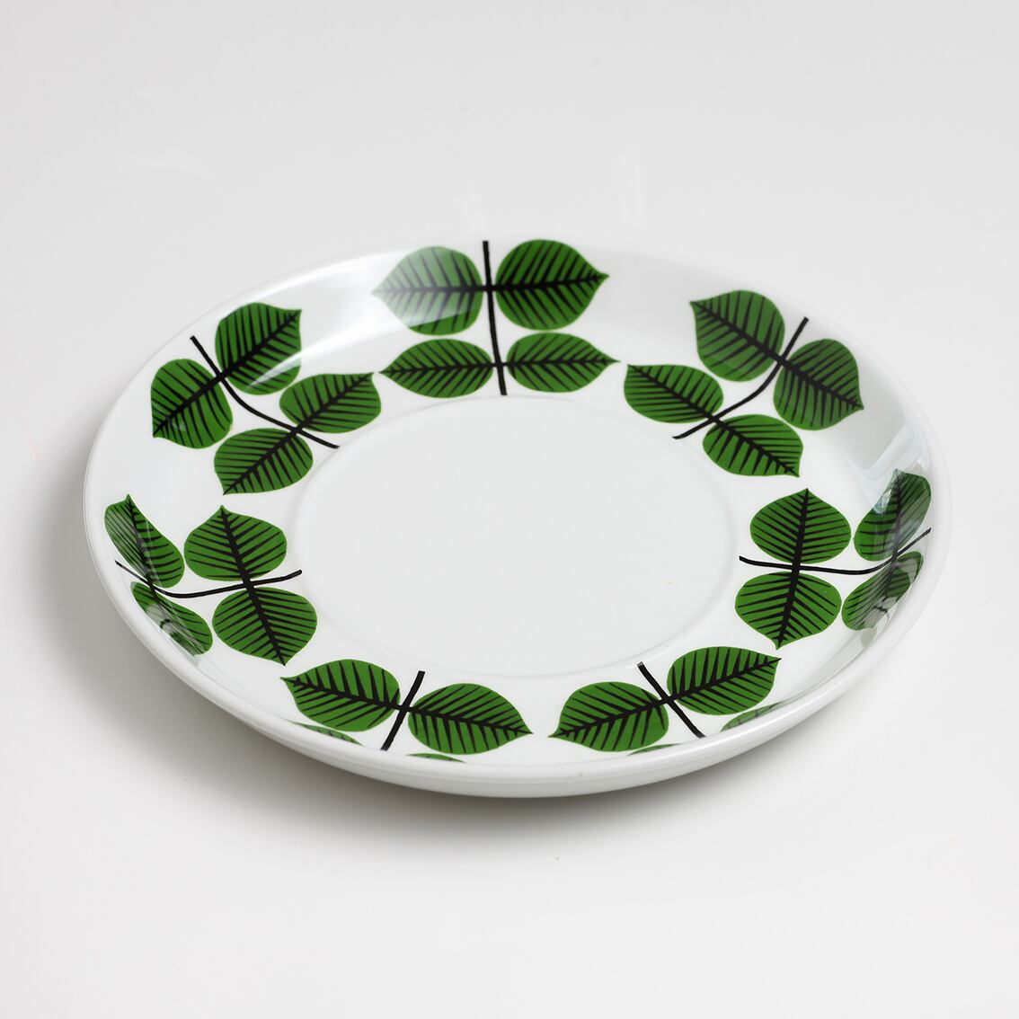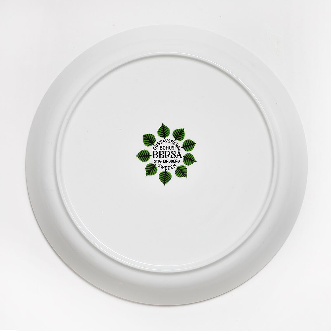 Berså(ベルソー/日本ではベルサとも呼ばれます)は庭園などの小さな「あずまや」を意味するスウェーデン語。お茶の時間(FIKA)をイメージして命名されたのでしょうか。巨匠Stig Lindberg(スティグ・リンドベリ)の作品の中でもとくに人気が高いことで知られる Berså は、明快に描かれた緑の葉と白地のコントラストが爽やかな北欧デザインの代名詞ともいえる傑作シリーズです。こちらはソーサーです。
