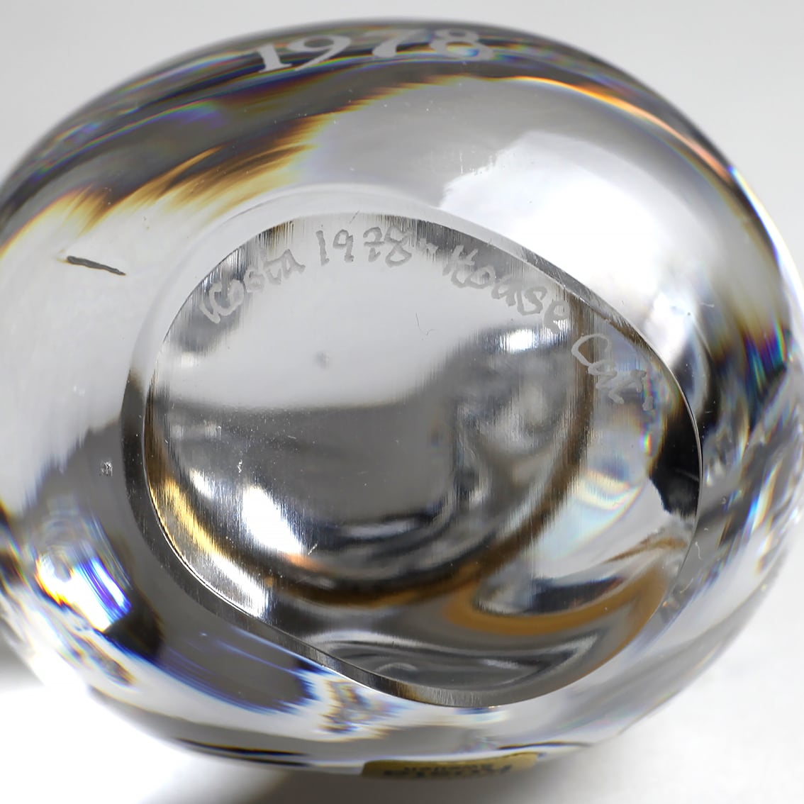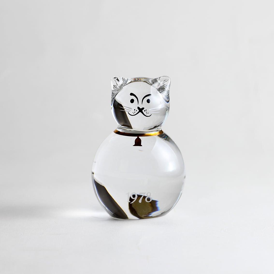 にぎやかにファミリーを揃えてみたり、重量感と安定感のあるクリスタルガラスなのでペーパーウェイトとしても。底面に制作年と作品名が刻まれています。