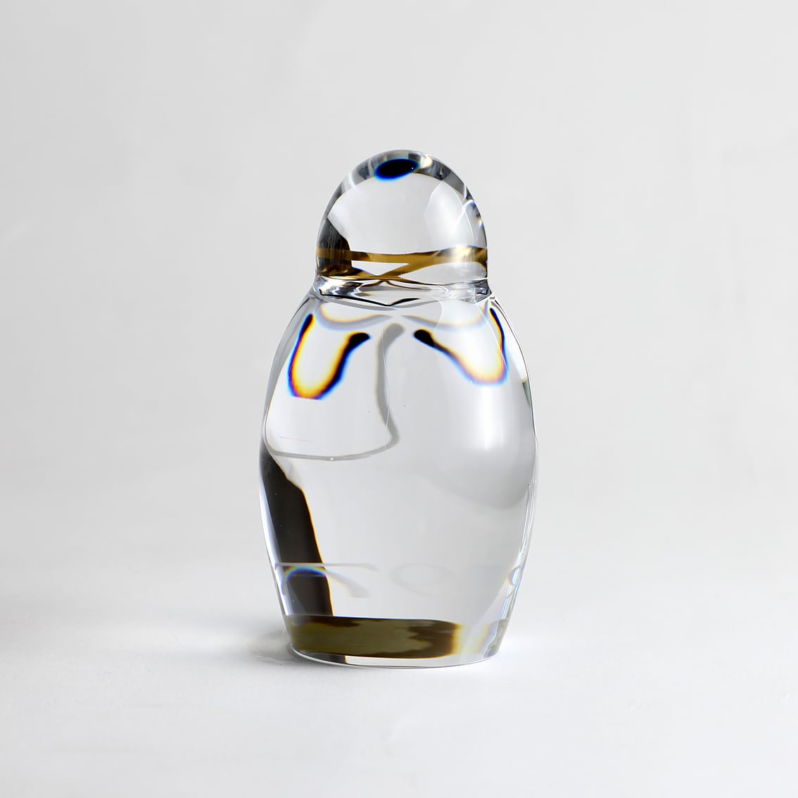 にぎやかにファミリーを揃えてみたり、重量感と安定感のあるクリスタルガラスなのでペーパーウェイトとしても。底面に制作年と作品名が刻まれています。