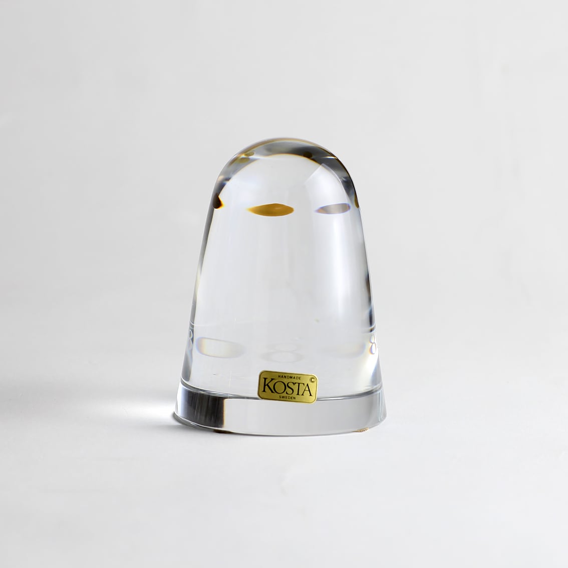 FamilijenはスウェーデンのKosta Boda社が1970年から1984年にかけて発表したクリスタルガラスのコレクターシリーズで、毎年1~2体ずつ新しい家族が加わりました。お母さん、双子の赤ちゃん、叔母さん、おじいさん、猫など合計16体のガラスの大家族。制作者はGöran Wärff(ヨーラン・ヴァルフ)Ann Wärff(アン・ヴァルフ)夫妻。ヨーランがデザインしたかわいいフォルムのガラスに、軽やかな筆使いでアンが個性豊かなキャラクターたちを金・黒・白で描いています。シリーズ11作目の1980年は、優しい目をした垂れ耳の Family Dog(うちの犬)。北欧ではレトリバーのような大型犬が人気だそうで、このワンちゃんもそうかもしれません。