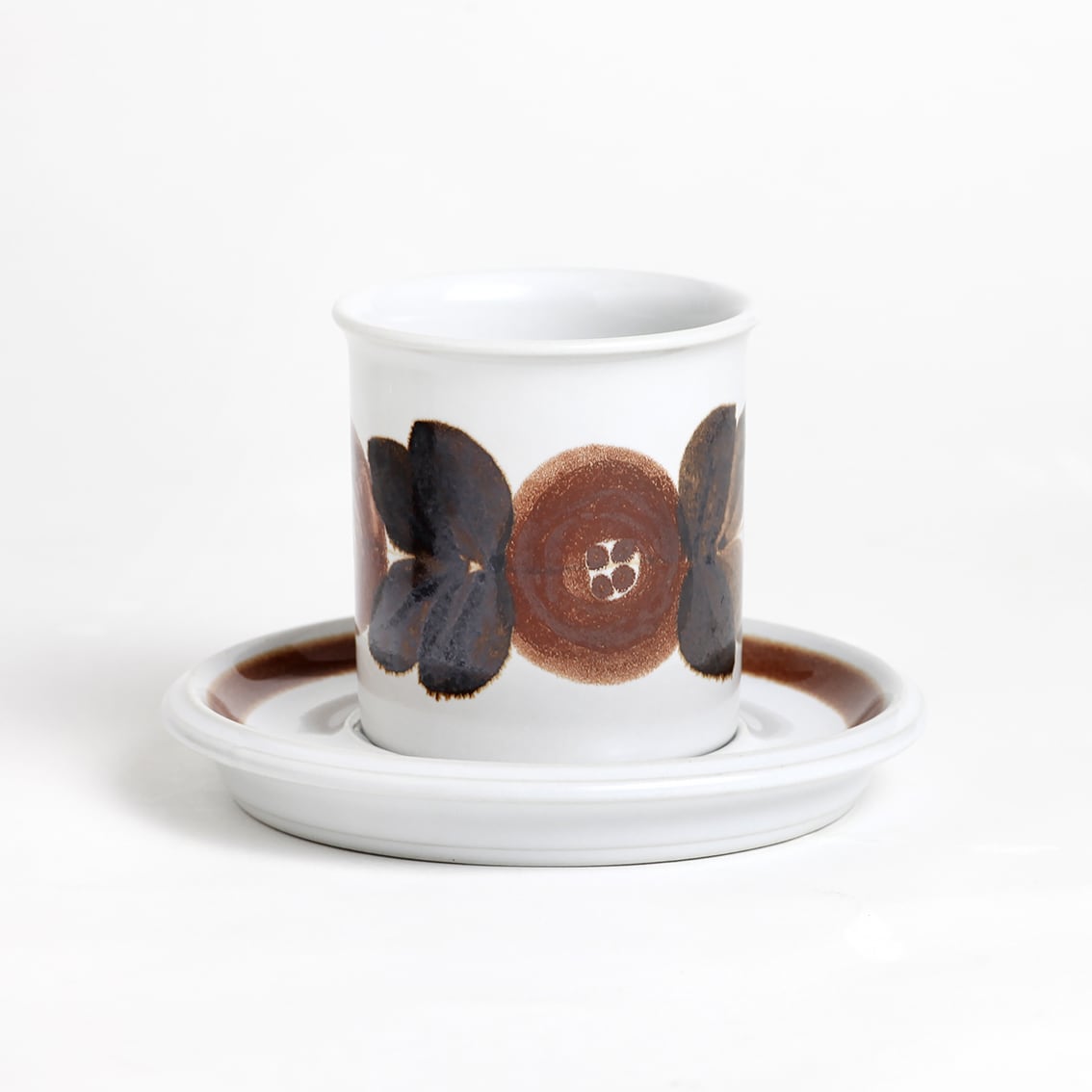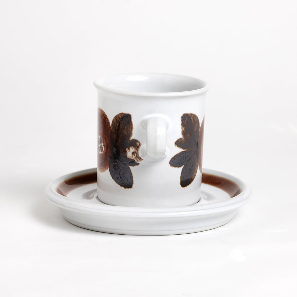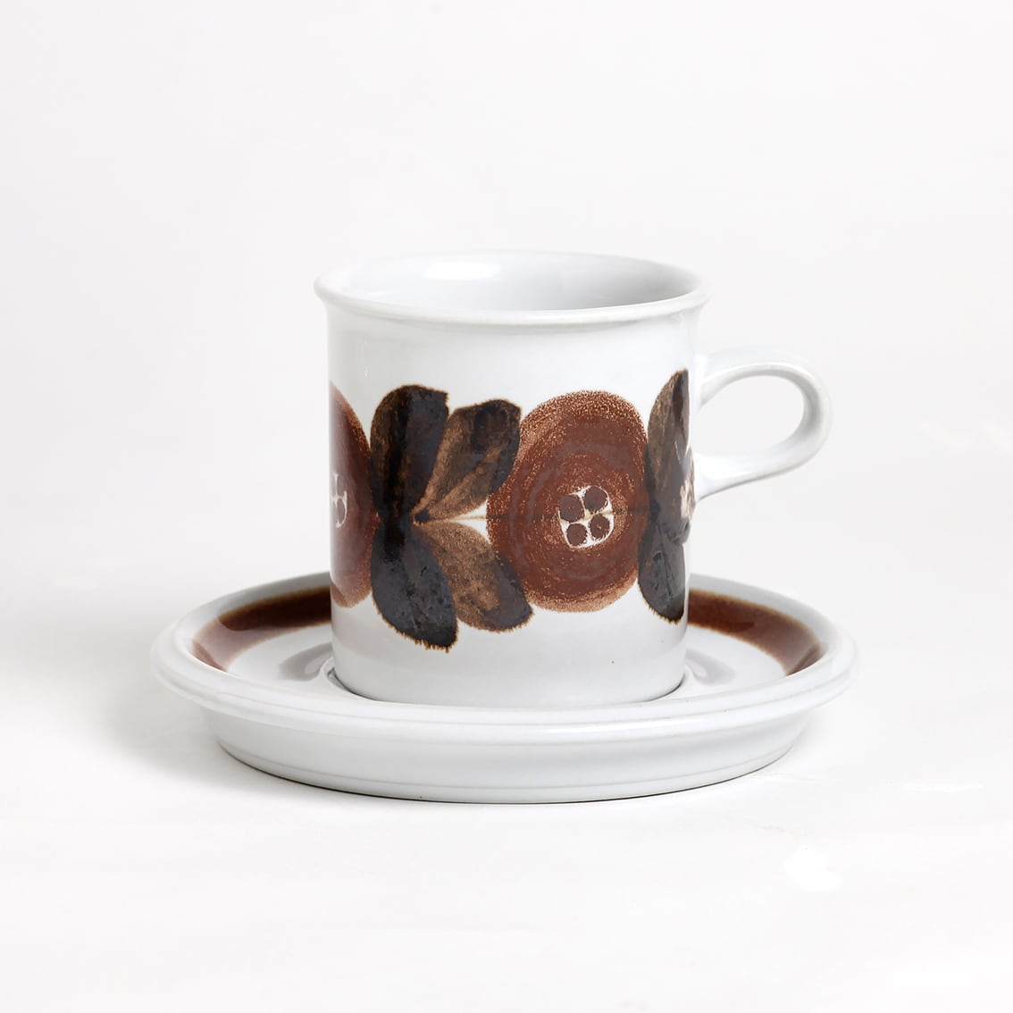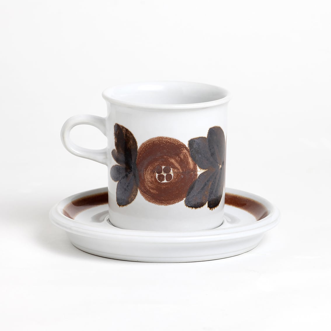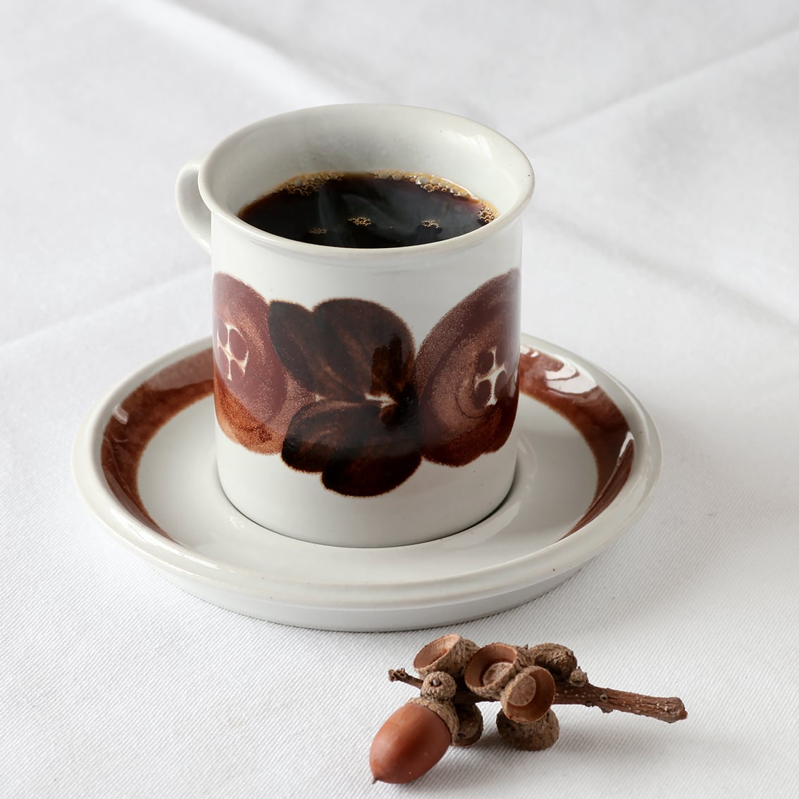 アラビアの代表的なデザイナーUlla Procope(ウラ・プロコペ)によるデザインのRosmarin(ロスマリン)シリーズのコーヒーカップ&ソーサーです。ロスマリンはフィンランド語でローズマリーの意味。ウラ・プロコペによる女性らしいデザインで花の絵柄は一点一点手描きされており、使うほどに愛着の増す、優しく温かな雰囲気が魅力です。