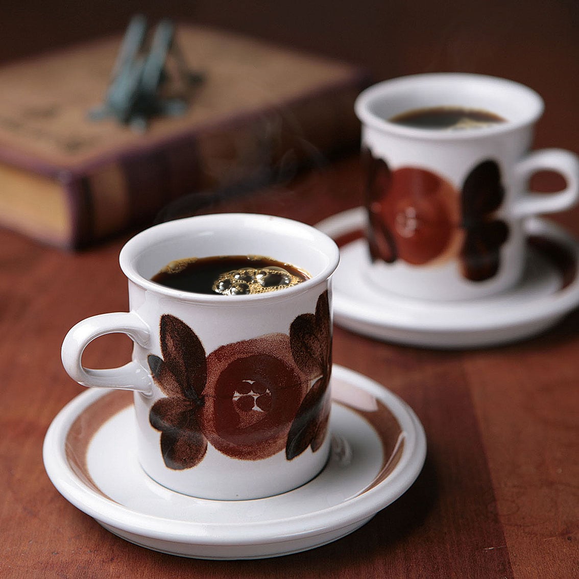 アラビアの代表的なデザイナーUlla Procope(ウラ・プロコペ)によるデザインのRosmarin(ロスマリン)シリーズのコーヒーカップ&ソーサーです。ロスマリンはフィンランド語でローズマリーの意味。ウラ・プロコペによる女性らしいデザインで花の絵柄は一点一点手描きされており、使うほどに愛着の増す、優しく温かな雰囲気が魅力です。