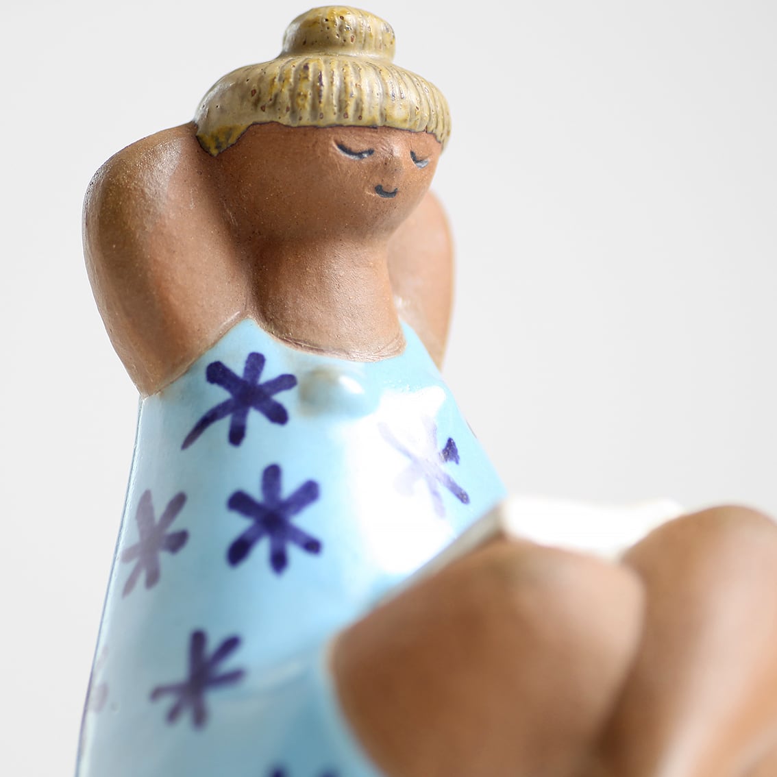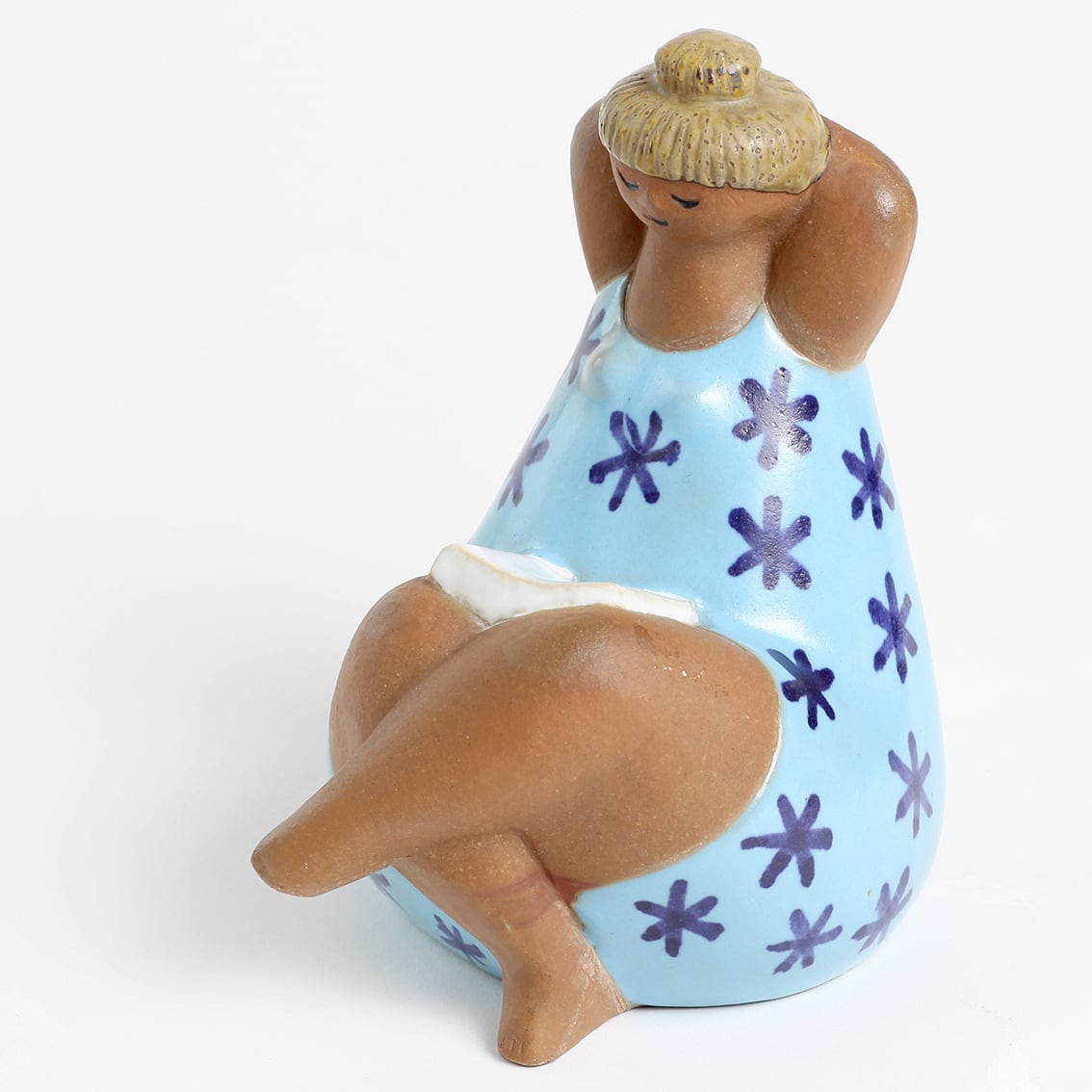 5人の女の子(Amalia、Beata、Charlotta、Dora、Emma)が微笑むシリーズは元々ブックエンドとしてデザインされましたが、軽量すぎるため置物として愛されるようになりました。5人中4人は読書中。女性が本を読むことに批判的だった当時のスウェーデン社会を風刺しながらリサは伸びやかで自立した女性像を表現しています。
