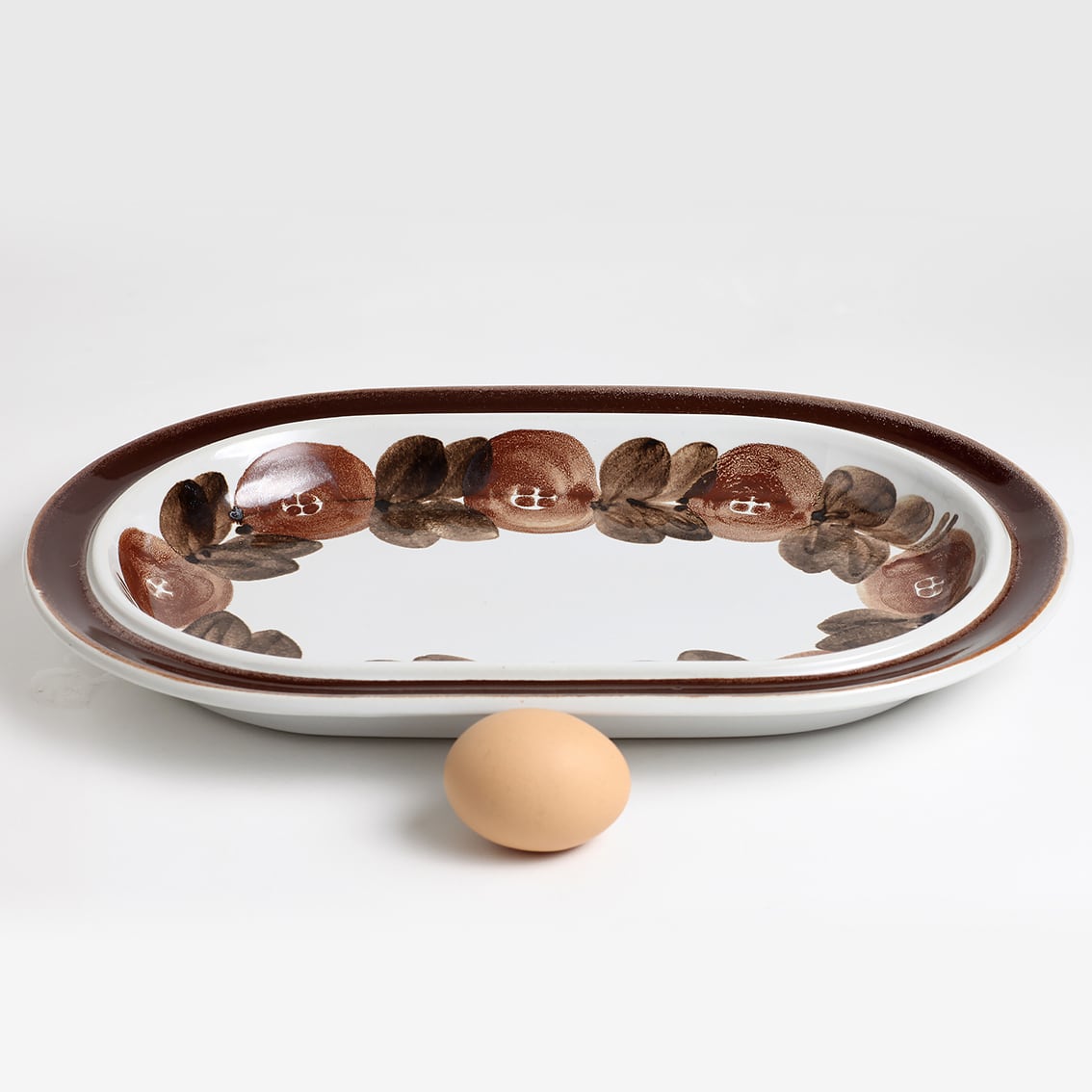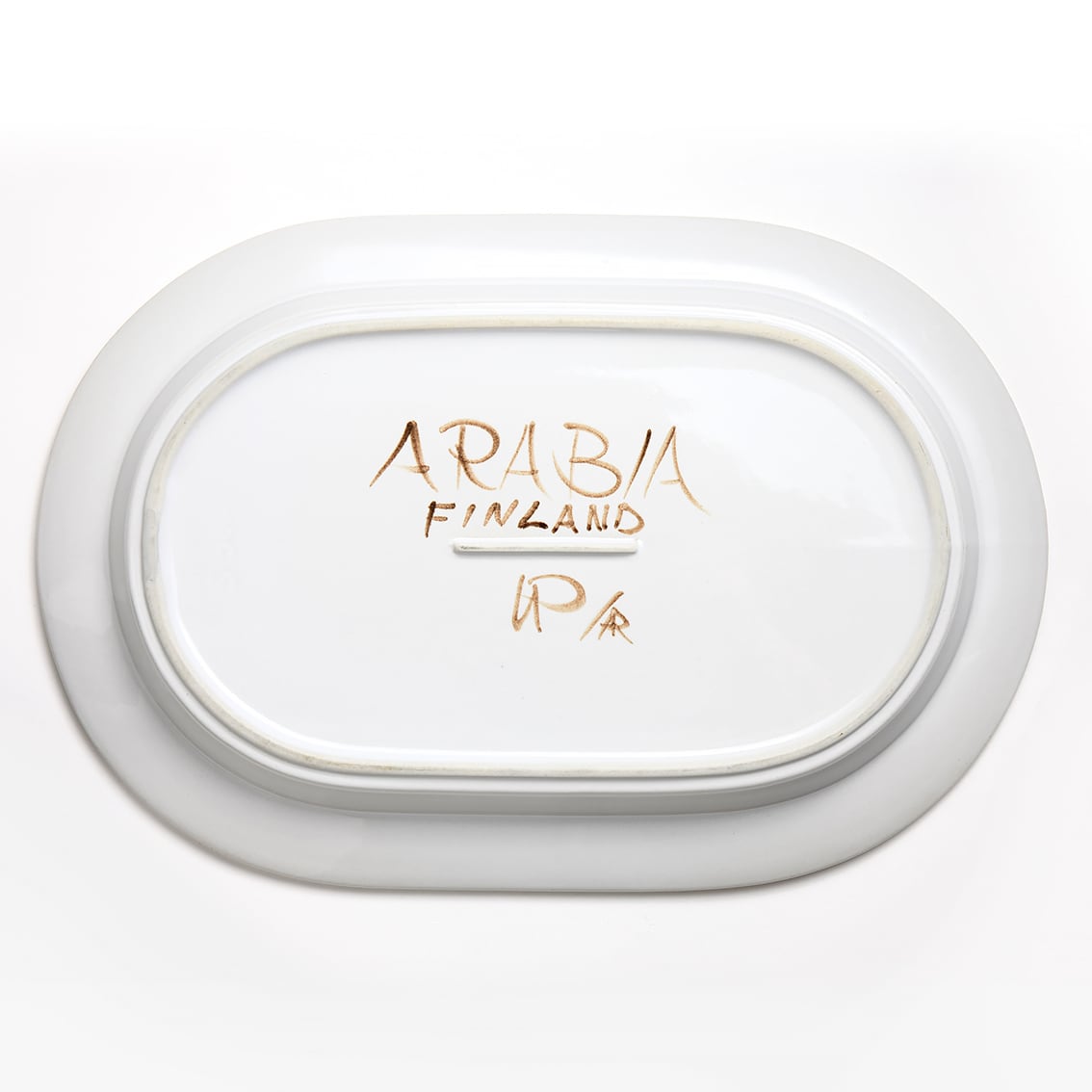 アラビアの代表的なデザイナーUlla Procope(ウラ・プロコペ)がデザインを手がけたRosmarin(ロスマリン)シリーズの365mm楕円大皿です。