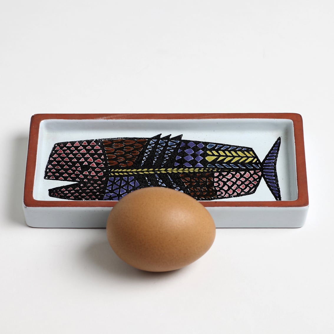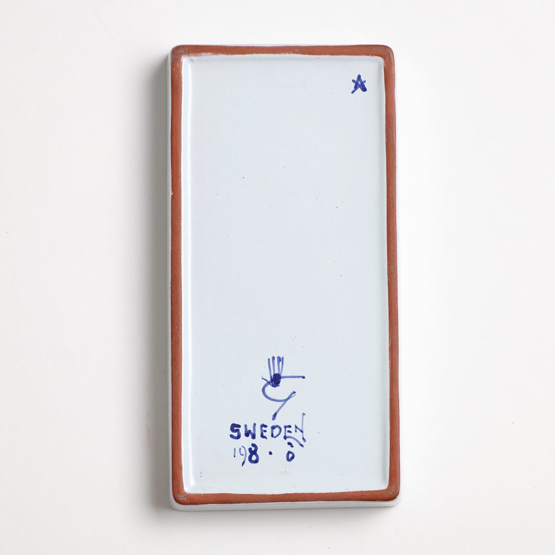 カルネヴァルはStig Lindberg(スティグ・リンドベリ)が1957-62年にかけてグスタフスベリで制作した32点のトレーや花瓶などからなるアート作品群で、ファイアンスという手法で作られています。ファイアンスは13世紀にイスラムより伝わった製法で、低温で焼き上げた器に乳白色の釉薬を施し彩色したもの。磁器とは違う重量感と柔らかで優しい印象が特徴です。