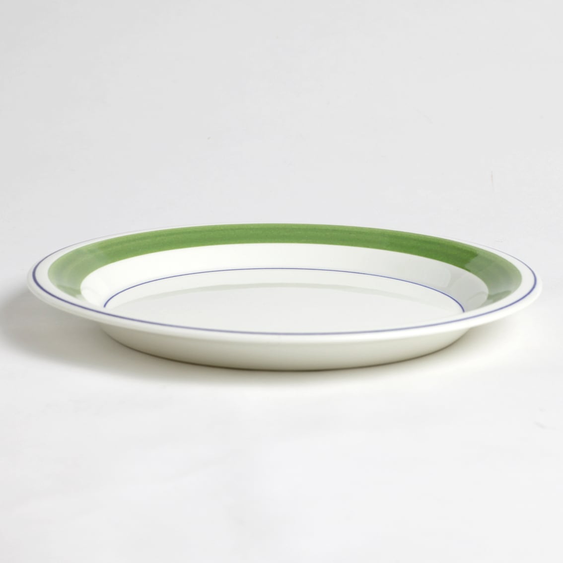 フィンランドARABIA(アラビア)Krokus(クロッカス)の195mmプレートです。花柄のデザインで有名なEsteri Tomula(エステリ・トムラ)の作品の中でもとくに人気の高いクロッカスシリーズは、黒い線画のBWバージョンとカラータイプがあります。こちらはカラータイプで使われている淡い緑をドーナツ状にあしらった195mmプレートです。フォルムデザインはPeter Winquist(ぺテル・ウィンクヴィスト)。大変人気のシリーズで現在同じ絵柄をあしらったマグカップやお皿などの復刻版が制作されています。同デザインの一回り小さな190mm皿の復刻版はお皿の縁が25mmありヴィンテージはよりフラットなデザインとなっています。生産期間が2年間のみの希少なシリーズです。